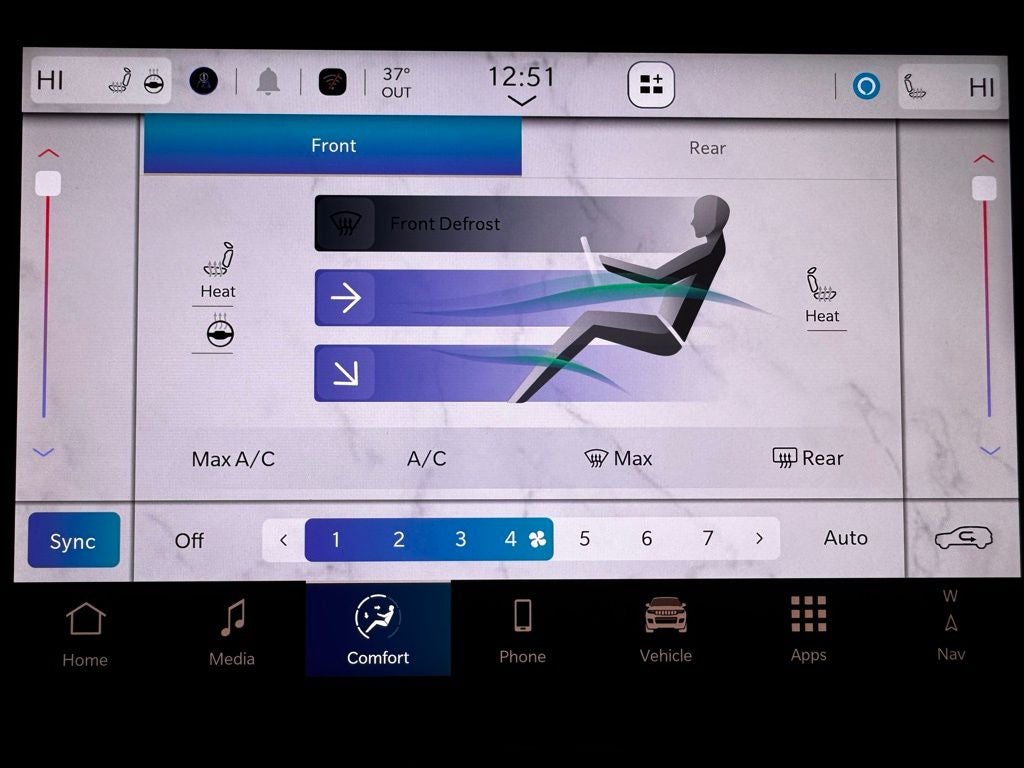 Inside, the cabin offers a premium experience with room for up to seven passengers. Luxurious Capri leather-trimmed seating, heated front and second-row seats, and a heated leather-wrapped steering wheel create a warm, inviting atmosphere for Minnesota winters. The driver enjoys an 8-way power-adjustable seat with memory settings, complemented by tri-zone automatic climate control and soft-touch materials throughout. The Uconnect 5 system with a large high-definition touchscreen provides seamless access to navigation, Apple CarPlay, Android Auto, Bluetooth®, and voice command features, keeping you connected and entertained on every drive.