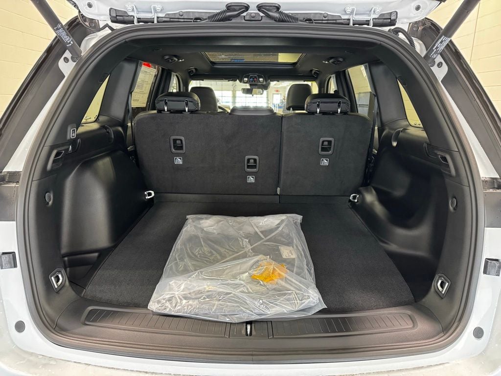 This model stands out with the Blackout appearance package, featuring a black-painted roof, gloss black exterior accents, and striking 20-inch black aluminum wheels wrapped in all-season performance tires. The sleek Diamond Black Crystal exterior finish gives it a bold, modern look. The Dual-Pane Panoramic Sunroof adds an open-air feel and natural light, creating a sense of space and sophistication inside the cabin.