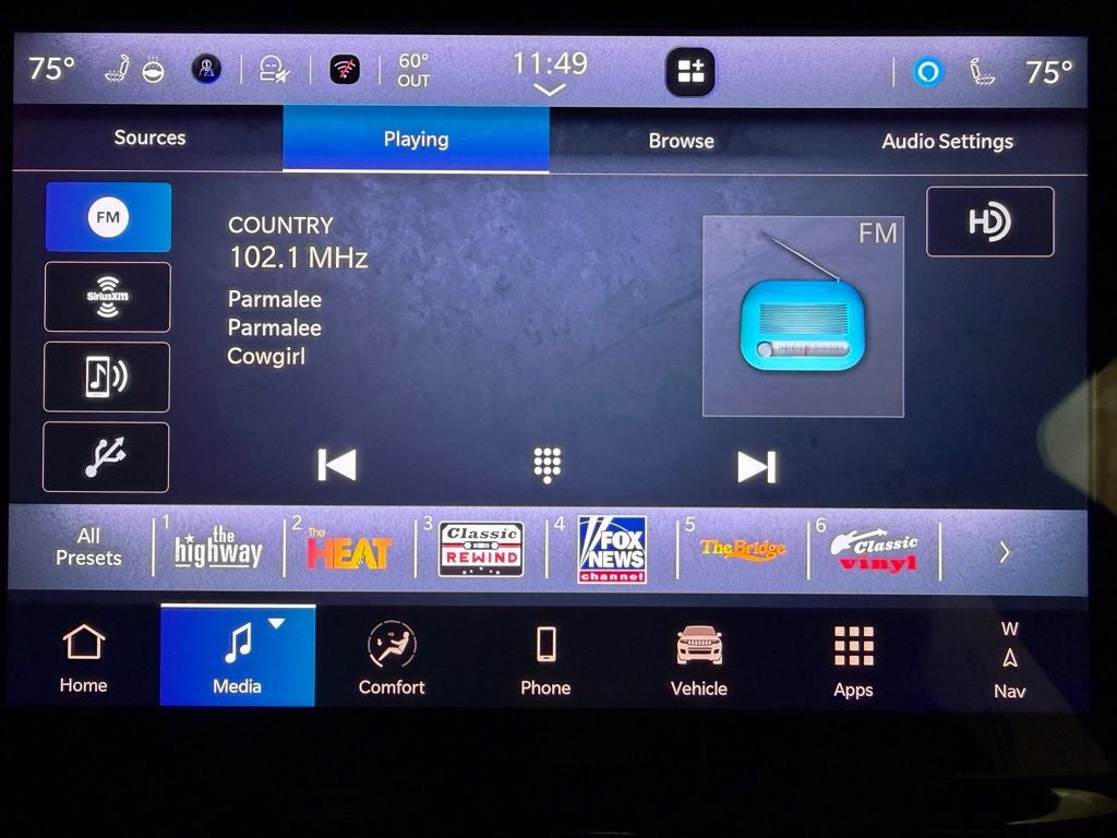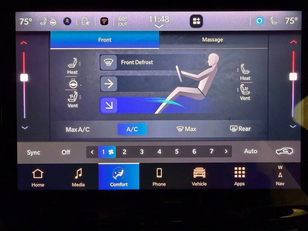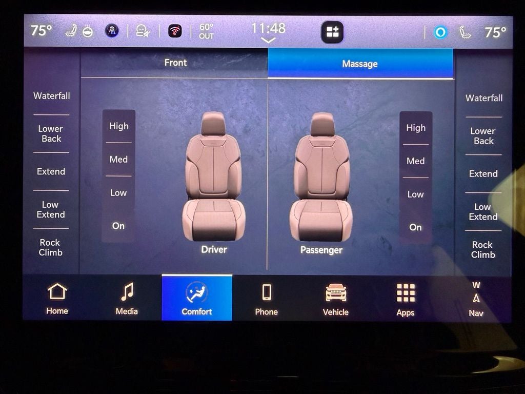This Grand Cherokee Overland is finished in Diamond Black Crystal Pearl-Coat paint and elevated even further with the Luxury Tech Group IV. This package adds ultra-premium Nappa leather seats, 12-way power front seating with power massage for both driver and passenger, memory functions, second-row manual window shades, and a wireless charging pad, creating a first-class interior atmosphere. The RrView AutoDim digital rearview mirror enhances visibility during night driving and poor weather.