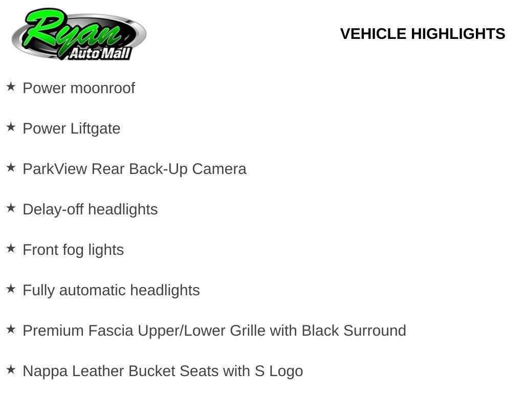 Finished in striking Red Hot Pearl-Coat exterior paint, this Pacifica is further enhanced by the S Appearance Package, giving it a bold and sporty presence on Buffalo roads. Distinctive details include 20-inch Foreshadow painted aluminum wheels with self-sealing all-season tires, a gloss-black grille surround, black Stow n Place roof rack, Anodized Ink badging and a premium rear fascia with black accents. Inside, Nappa leather bucket seats with embroidered S logos add an upscale and performance-inspired touch to the cabin.