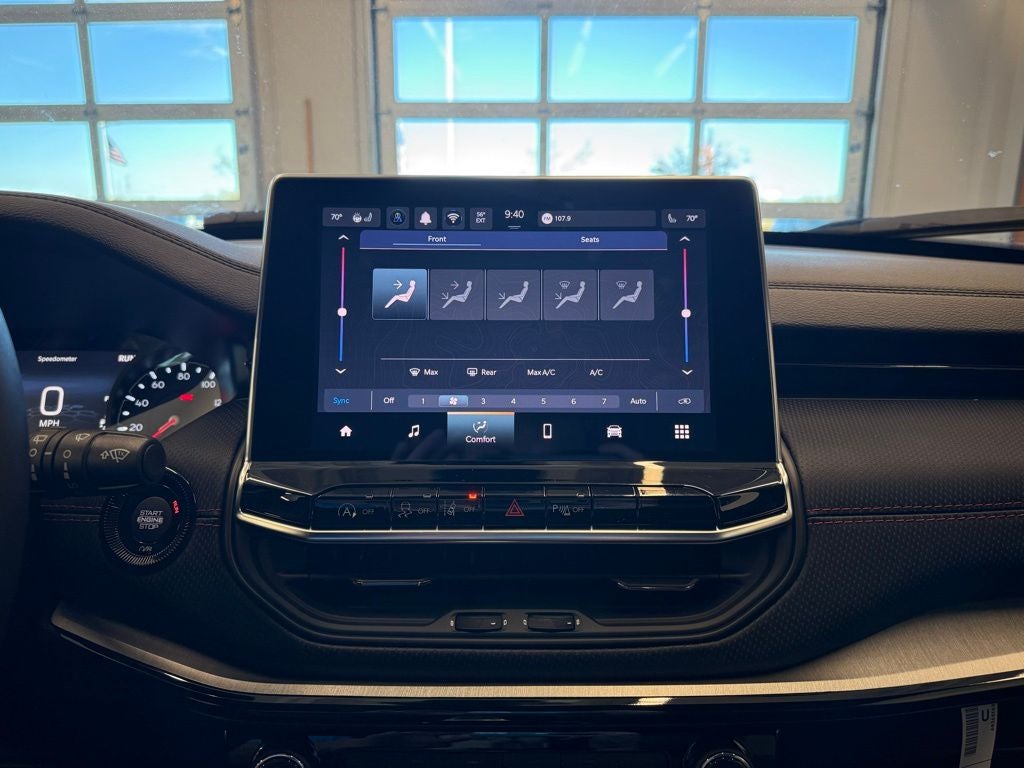Inside, the Compass Trailhawk combines rugged durability with modern comfort. Standard features include heated front seats, a heated steering wheel, dual-zone automatic climate control, and cloth and leather-trimmed seating. Technology is front and center with the Uconnect 5 infotainment system featuring a large touchscreen, wireless Apple CarPlay and Android Auto, Bluetooth® connectivity, and available navigation. Flexible storage options, including a 60/40 split-folding rear seat, make it practical for both daily errands and adventurous outings.
