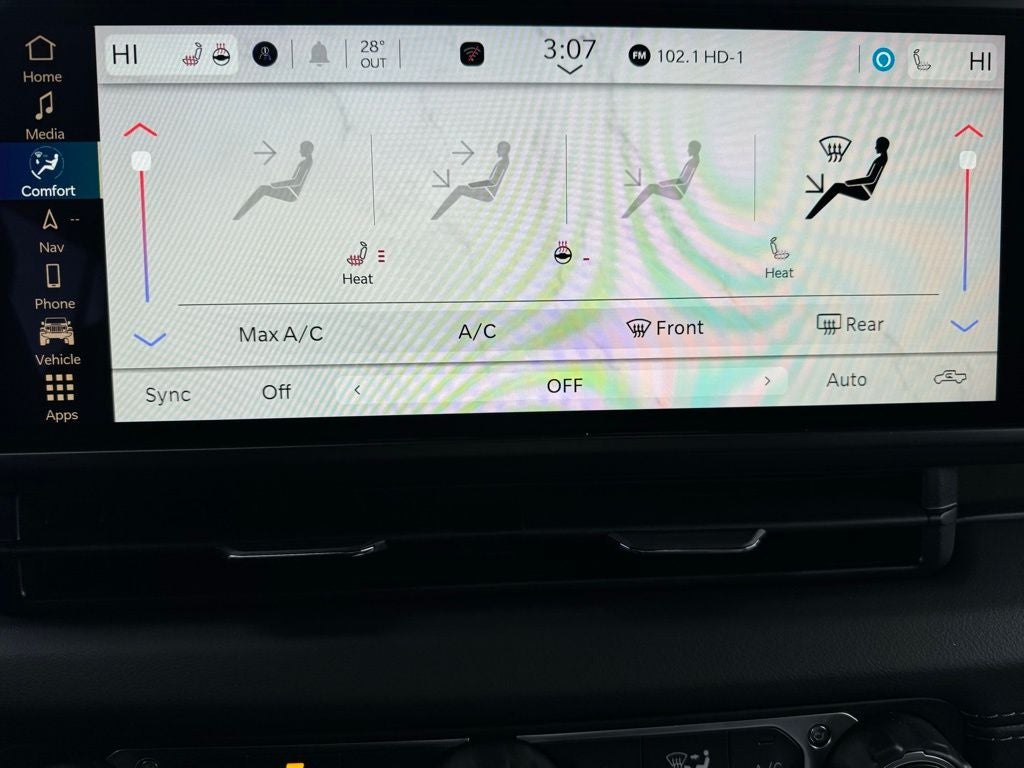 Exterior highlights include the body-color Freedom Top three-piece hardtop, winch-capable steel front bumper, body-color highline fender flares, Mojave hood decal, and a wireless removable speaker that keeps the adventure going wherever you roam. Practical touches like a universal garage door opener and automatic-dimming rearview mirror add everyday convenience.