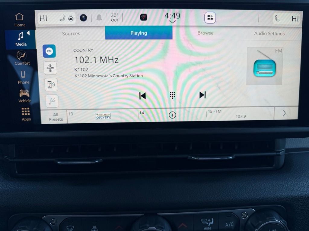 Durability and protection are boosted with cab rock rails, a premium front bumper with gloss-black accents, body-color fender flares, a black grille with gloss-black rings, LED premium reflector headlamps, LED fog lamps, LED tail lamps, and Corning Gorilla Glass windshield designed to resist chips and cracking on Minnesota roads. Deep-tint sunscreen windows, power-heated mirrors, automatic headlamps, and Mopar all-weather slush mats enhance comfort and visibility year-round.