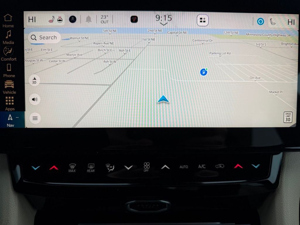 Inside, the cabin offers a modern, upscale environment crafted around driver and passenger comfort. Standard equipment includes a large touchscreen infotainment system with integrated navigation, wireless Apple CarPlay and Android Auto, a digital driver display, premium audio, heated front seats, a heated steering wheel, dual-zone automatic climate control, and a power-adjustable drivers seat with memory settings. Spacious seating and a versatile cargo area provide the flexibility needed for family trips, errands, or weekend getaways.