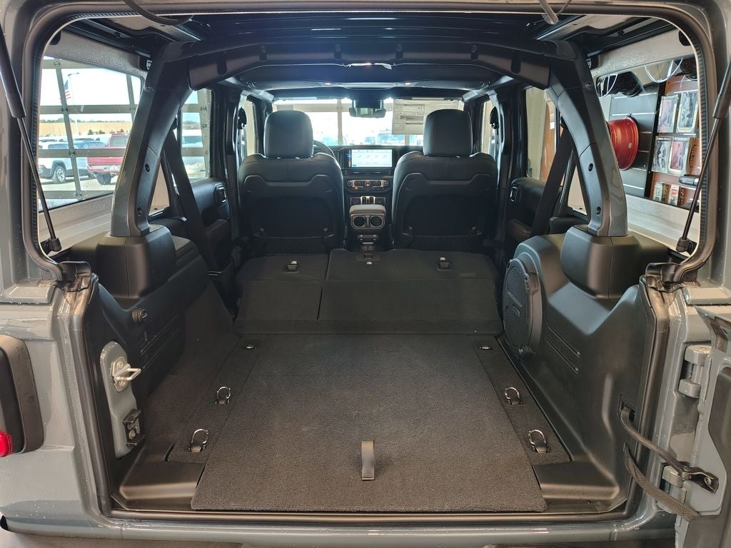 This Wrangler 392 is equipped with aggressive 35-inch all-terrain tires mounted on 17-inch machined wheels with black pockets, delivering both a commanding presence and exceptional traction. Functional upgrades like a hinge-gate reinforcement and LED front fog lamps enhance durability and visibility in a variety of environments.