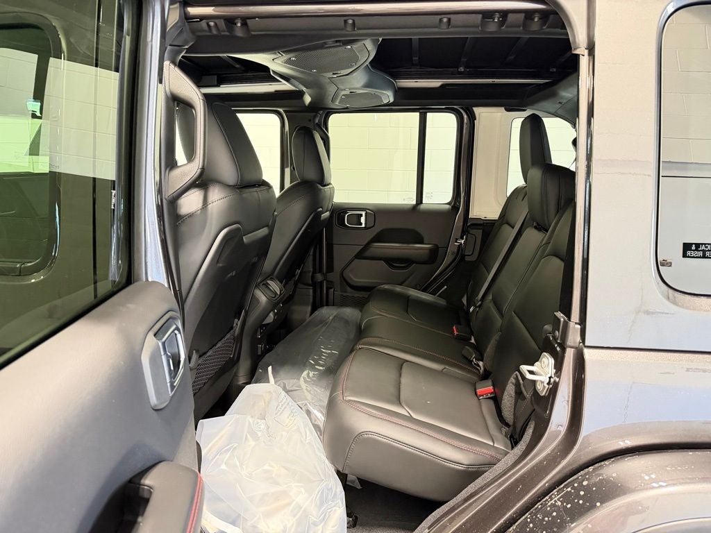Inside, the Rubicon X cabin blends trail-ready durability with refined luxury. Nappa leather seating, heated front seats, and a heated steering wheel provide year-round comfort, while power-adjustable front seats with lumbar support ensure a tailored driving position for long trips or demanding terrain. The advanced Uconnect 5 navigation system features a large 12.3-inch touchscreen display with wireless Apple CarPlay and Android Auto compatibility, HD Radio, Bluetooth® connectivity, integrated voice command, and connected travel services. An Alpine premium audio system fills the cabin with rich, detailed sound, and acoustic laminated glass helps maintain a quieter ride on the open road.