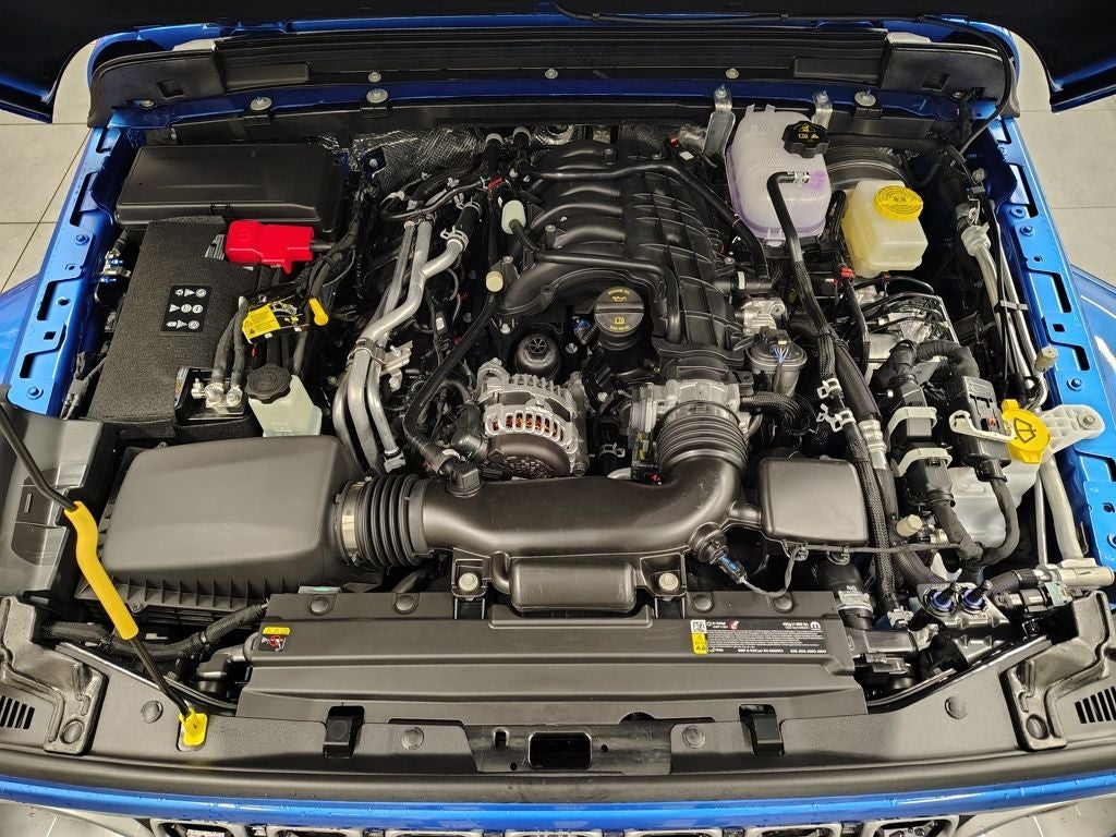 The body-color three-piece hard top adds a refined look while maintaining open-air versatility, complete with a rear window defroster, rear wiper and washer, and a Freedom Panel storage bag. With no soft top included, this configuration emphasizes durability and four-season usability. The engine oil cooler enhances performance and durability during demanding conditions, whether towing or tackling off-road adventures.