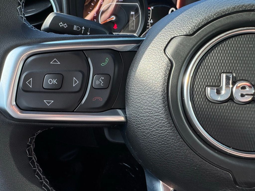 Inside, the Sahara Popular Equipment Group brings significant upgrades in comfort and technology. McKinley-trimmed seats, 8-way power front seating with 4-way lumbar adjustment, integrated voice command, GPS navigation, HD Radio, and Uconnect 5 NAV with a large 12.3-inch touchscreen create a premium cabin environment. An Alpine premium audio system enhances sound clarity, while connected travel and traffic services improve navigation throughout Wright County. Side steps make entry and exit easier, and safety is bolstered with blind-spot and cross-path detection, automatic high-beam control, ParkSense rear park assist, and an integrated off-road camera to help navigate tight trails and obstacles.