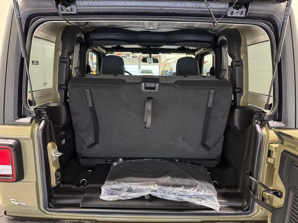 Power comes from Jeeps proven engine paired with the smooth-shifting 8-speed automatic transmission, delivering responsive acceleration and confident control both on pavement and off the trail. Standard Wrangler Sport equipment includes Command-Trac part-time four-wheel drive, solid front and rear axles, skid plates, hill start assist, electronic stability control, and a durable suspension designed to handle rugged terrain. A fold-down windshield, removable doors, and open-air driving capability stay true to the Wranglers iconic design.