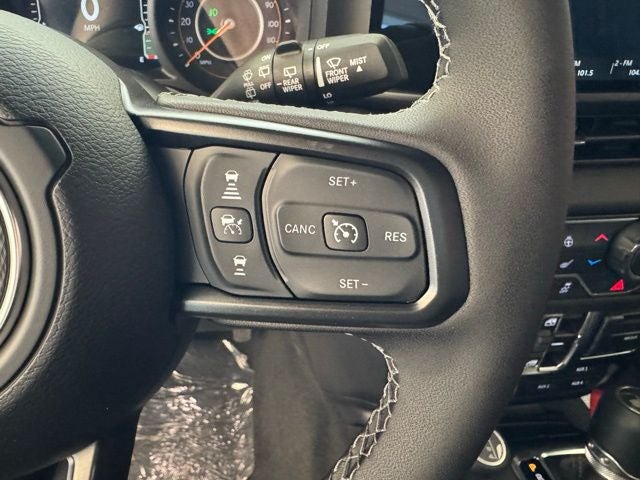 This Wrangler also features modern driver-assistance technology, including Adaptive Cruise Control with Stop, Forward Collision Warning Plus, and Advanced Brake Assist for added confidence on the road or trail. The Trailer Tow and Auxiliary Switch Group, complete with a 7-pin and 4-pin wiring harness, expands versatility for hauling gear or outdoor equipment.