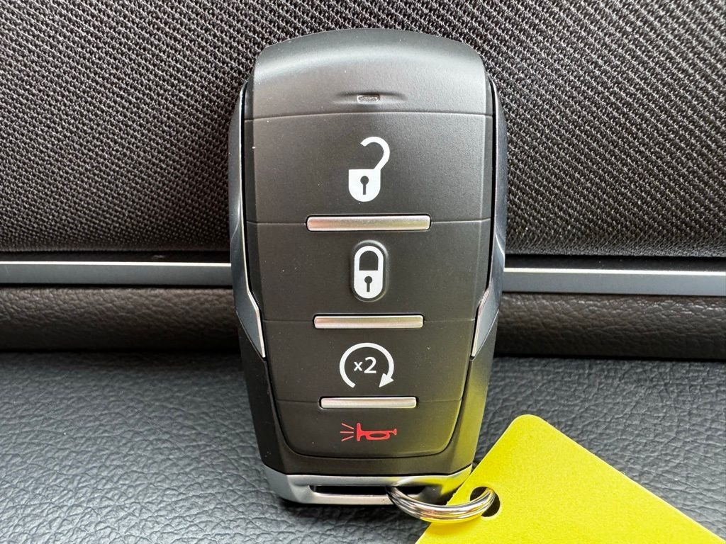 Inside, the Big Horn Level 1 Equipment Group provides elevated convenience and comfort features. Heated front seats, a heated steering wheel, and an 8-way power-adjustable drivers seat with 2-way power lumbar support ensure the perfect fit for long drives. Additional highlights include a rear 60/40 folding seat, rear center armrest, leather-wrapped steering wheel with mounted audio controls, power-adjustable pedals, automatic-dimming rearview mirror, rear power-sliding window, and second-row in-floor storage bins for added versatility. The universal garage door opener and automatic power-folding, heated side mirrors with power fold-away add everyday convenience.