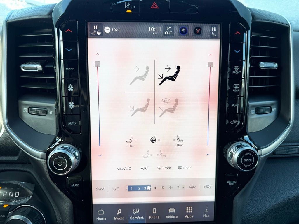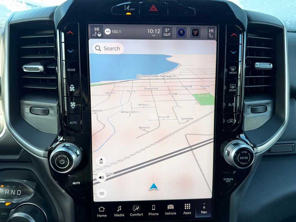 Inside, the Big Horn Level 2 Equipment Group transforms the cabin into a comfortable and technology-focused space. The Uconnect 5 Nav system with a 12-inch touchscreen display and 7-inch TFT color cluster keeps navigation, media and vehicle information easily accessible. A 9-amplified speaker system with subwoofer and SiriusXM 360L capability enhance entertainment, while steering-wheel-mounted audio controls keep everything within reach. Heated front seats, a heated steering wheel and dual-zone automatic climate control ensure comfort during cold Minnesota winters. An 8-way power adjustable driver seat with power lumbar support, power adjustable pedals and a universal garage door opener add everyday convenience.