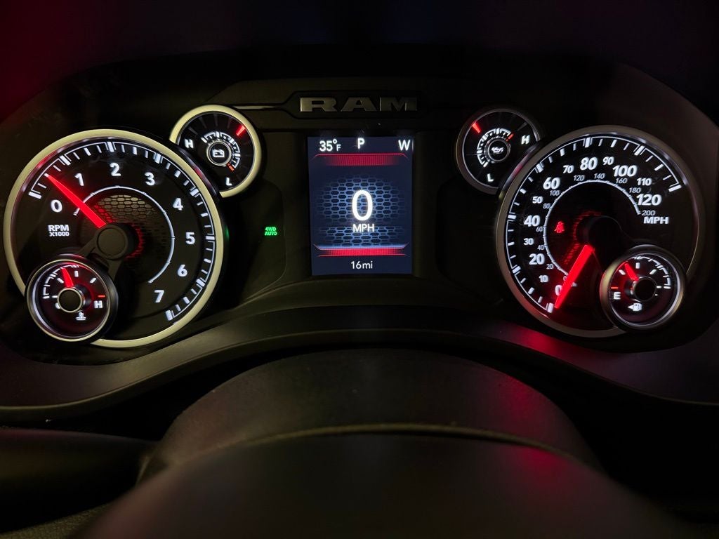 Inside, the spacious Crew Cab offers premium comfort and cutting-edge technology designed for long drives or hard days on the job. The Big Horn Level 1 Equipment Group upgrades the interior with heated front seats, a heated steering wheel, and an 8-way power-adjustable drivers seat with lumbar support. A leather-wrapped steering wheel with mounted audio controls, power-adjustable pedals, and a rear power-sliding window add convenience and style. Additional cabin refinements include automatic dual-zone climate control, in-floor storage bins, and a center armrest with deep storage capability.
