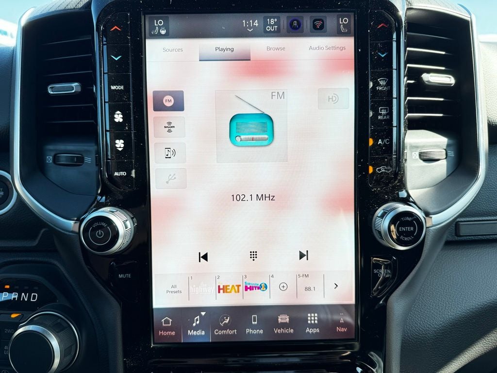 The Granite Crystal Metallic Clear-Coat exterior gives this Big Horn a sophisticated and durable finish that stands out in any environment. The available Night Edition package adds extra flair with body-color bumpers, accent-color premium power mirrors, and distinctive styling elements that complement the trucks bold stance. Twenty-inch aluminum wheels and all-season tires provide a confident look and surefooted performance, while practical upgrades like the trailer brake controller make towing safer and more precise.