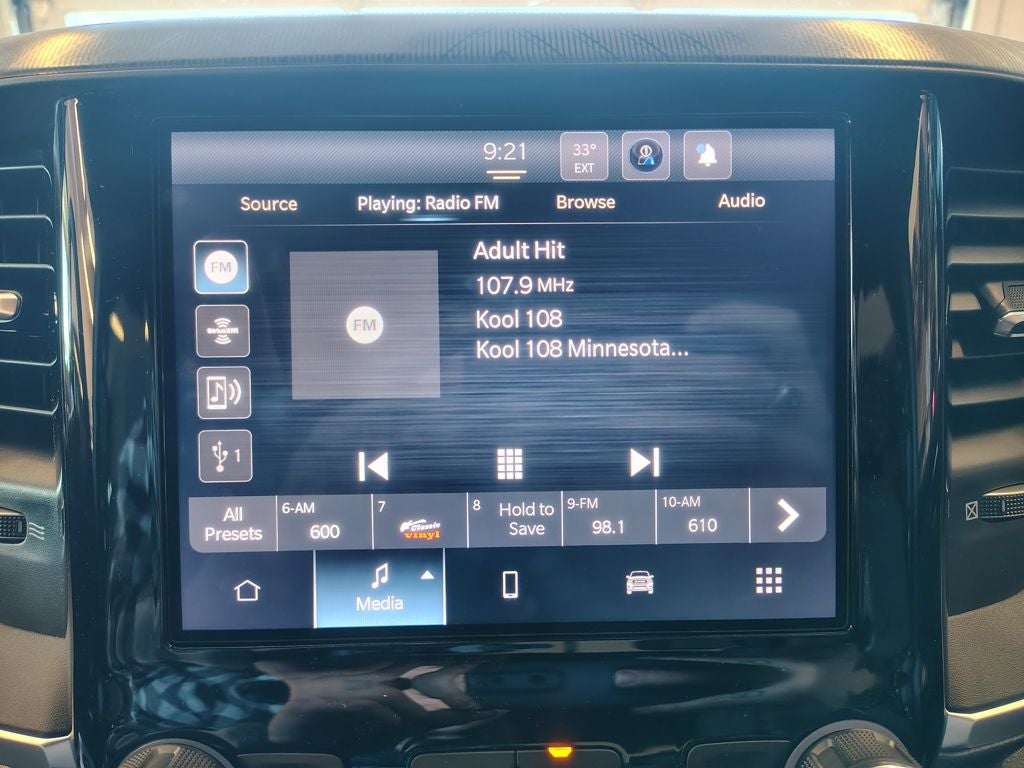 Technology and convenience features include steering-wheel-mounted audio controls, SiriusXM capability, a universal garage door opener, power-adjustable pedals, automatic power-folding mirrors, and a rear power-sliding window. A 400-watt inverter provides onboard power for tools and devices, while Mopar front and rear rubber floor mats help protect the interior from Minnesota weather year-round. MyFlexCare Service adds additional ownership confidence, and the trucks advanced engineering ensures a smooth, controlled, and comfortable driving experience.