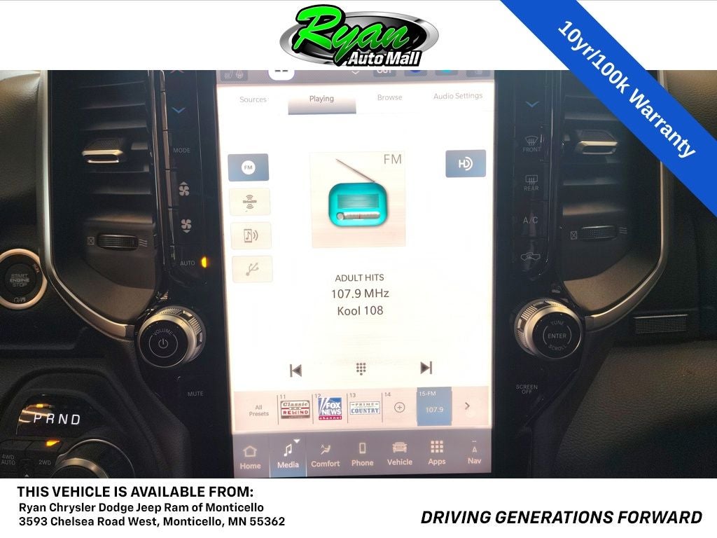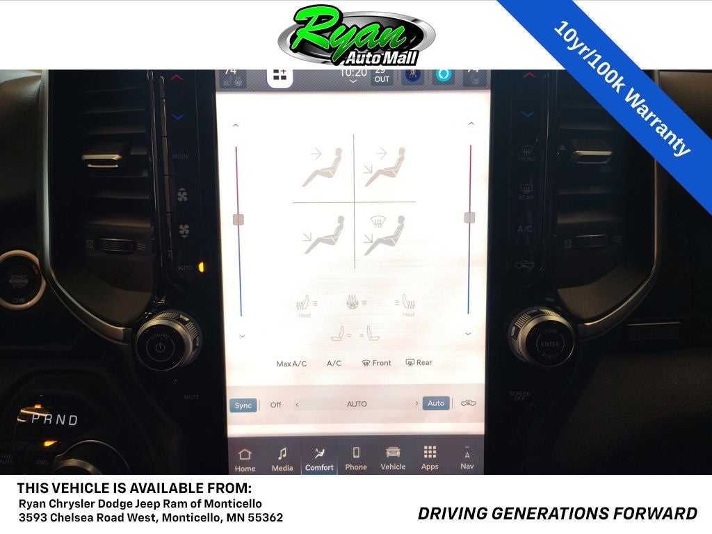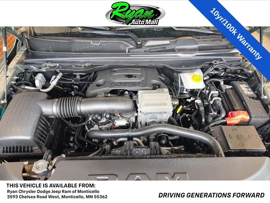 Power comes from the available 5.7L HEMI V8 engine with eTorque mild-hybrid technology, multi-displacement system, and variable valve timing, providing impressive towing capability along with improved efficiency and responsiveness. Paired with a smooth-shifting 8-speed automatic transmission and a 3.92 rear axle ratio, this truck is well equipped for hauling trailers, equipment, or recreational gear around Monticello and throughout Central Minnesota. Four-wheel drive enhances traction on snow-covered roads and uneven terrain, while the integrated trailer brake controller adds confidence when towing.