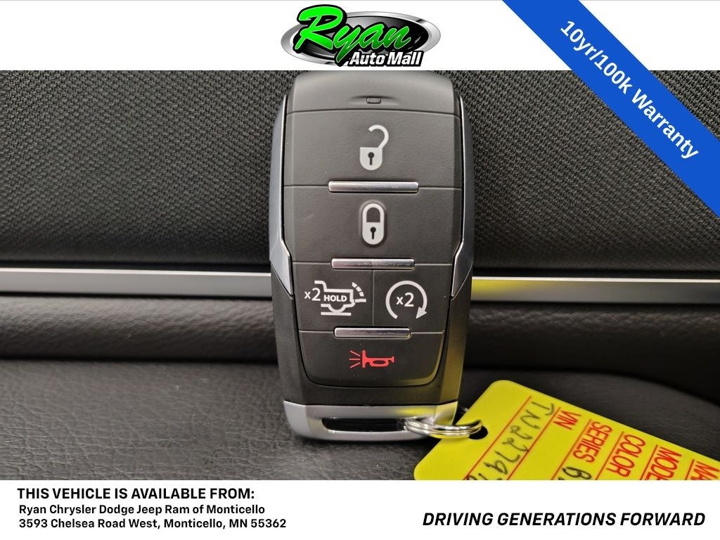 Advanced technology is built in to keep you connected. The Uconnect 5 NAV system with a 12-inch touchscreen provides access to navigation, media, and vehicle settings with ease. It includes Connected Travel and Traffic Services and SiriusXM 360L with a trial subscription. A 400W inverter and 115-volt auxiliary power outlet offer added versatility for charging tools or electronics. Premium audio is delivered through a nine-speaker system with a subwoofer, while features like the automatic-dimming rearview mirror, power-folding exterior mirrors, and universal garage door opener add convenience.