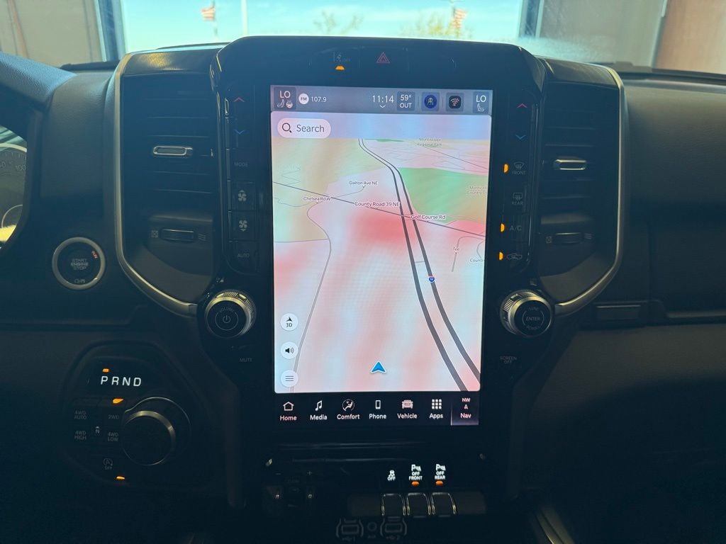 Inside the spacious Crew Cab, the Big Horn Level 2 Equipment Group delivers a premium blend of comfort and technology. The refined cabin features heated front seats, a heated steering wheel, dual-zone automatic climate control, power-adjustable pedals, an 8-way power driver seat with power lumbar adjustment, and a leather-wrapped steering wheel for added comfort on long drives. The advanced Uconnect 5 NAV system with a large 12-inch touchscreen display provides navigation, smartphone integration, and connected travel and traffic services, while a 7-inch TFT driver display keeps key information easily visible. A premium nine-speaker audio system with subwoofer, SiriusXM 360L capability, multiple USB and auxiliary power outlets including a 115-volt outlet, and a 400-watt inverter ensure entertainment and connectivity wherever the road leads. Additional thoughtful features include a rear center armrest, rear 60/40 folding seat, in-floor storage bins, automatic-dimming rearview mirror, universal garage door opener, and automatic power-folding heated mirrors.