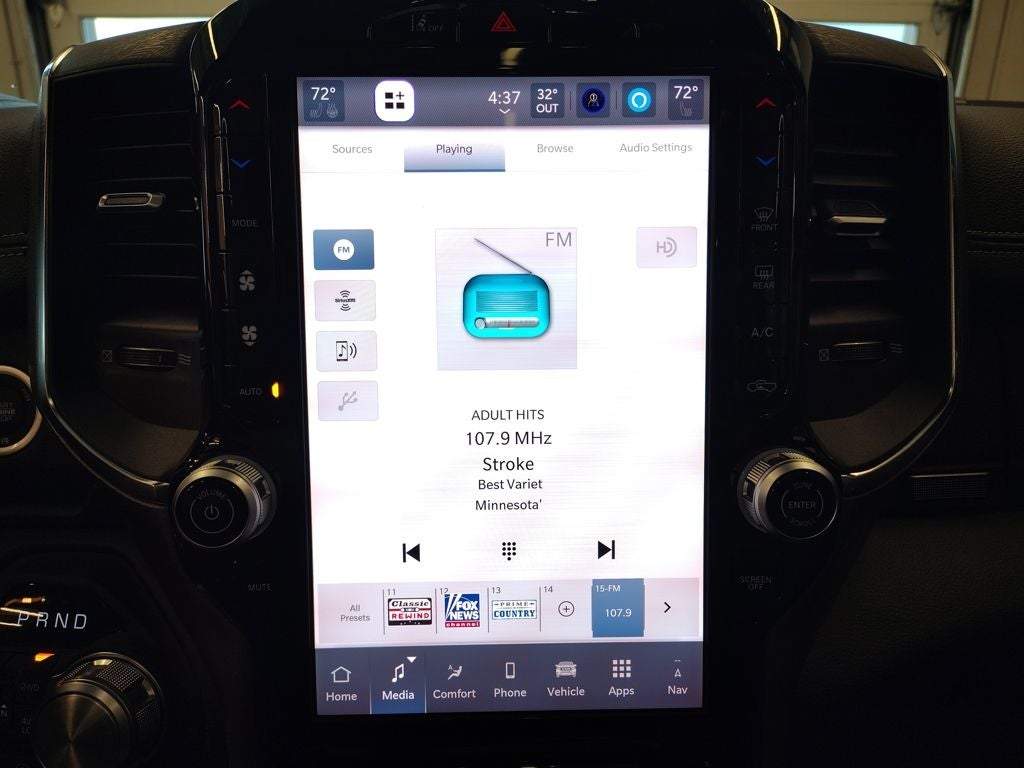 Under the hood, the Ram 1500 Laramie is engineered for confident performance and control, supported by a robust 4x4 drivetrain and a 3.92 rear axle ratio for enhanced towing and off-road capability. Standard equipment includes a smooth-shifting automatic transmission, advanced traction management, and a refined suspension that provides a comfortable ride whether you are commuting through Monticello or heading out on longer Minnesota highways. Safety and driver-assist technologies such as forward collision warning, adaptive cruise control, blind spot monitoring, rear cross-path detection, and a high-definition rearview camera help add peace of mind behind the wheel.