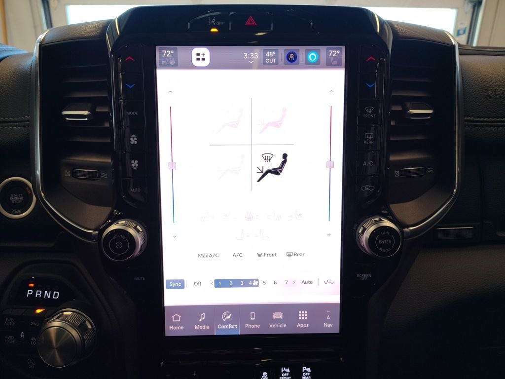 Under the hood, the advanced 3.0L Hurricane inline-six twin-turbo engine with Engine Stop/Start technology pairs with a smooth 8-speed automatic transmission to provide impressive horsepower, confident towing strength, and responsive acceleration. The 3.55 rear axle ratio, 7,100-pound GVWR, and 33-gallon fuel tank make this Ram well suited for both work and travel, while its composed ride and refined handling ensure comfort on every drive.