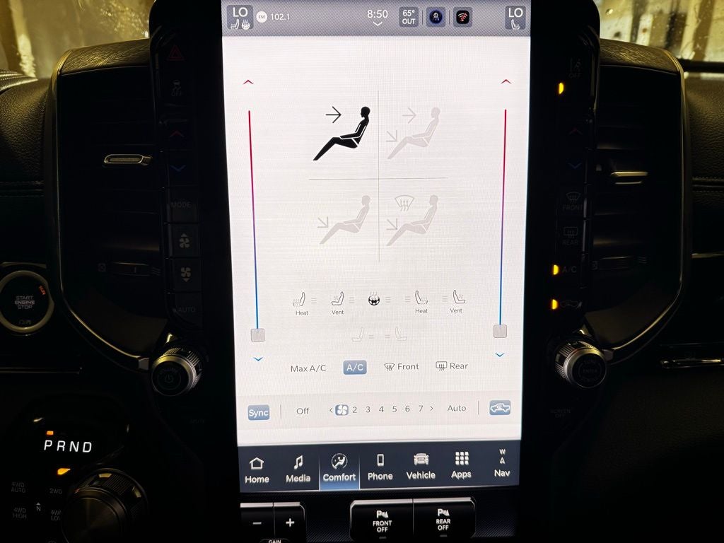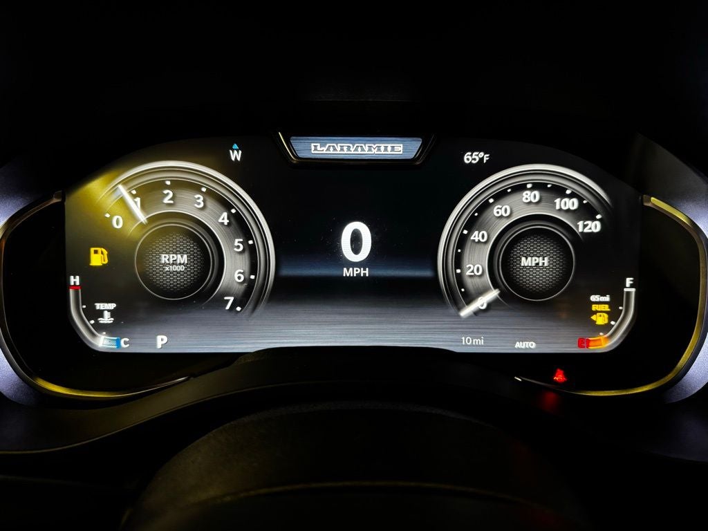 Inside, the Laramie Level 2 Equipment Group brings modern convenience and premium comfort. Drivers will appreciate the 12-inch digital instrument cluster, Uconnect 5 NAV system with a massive 14.4-inch touchscreen display, power tailgate, and a 19-speaker Harman Kardon premium sound system that delivers concert-like audio quality. The addition of a front passenger interactive display enhances usability, while features such as rain-sensitive windshield wipers and dual-pane panoramic sunroof bring practicality and refinement to every drive.