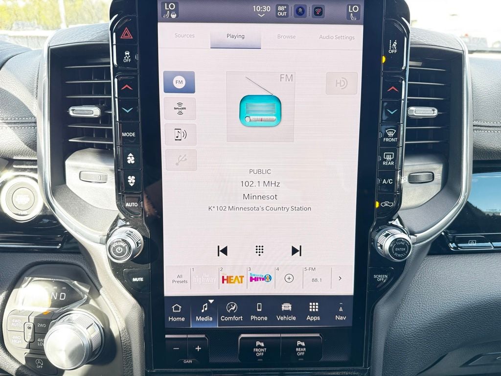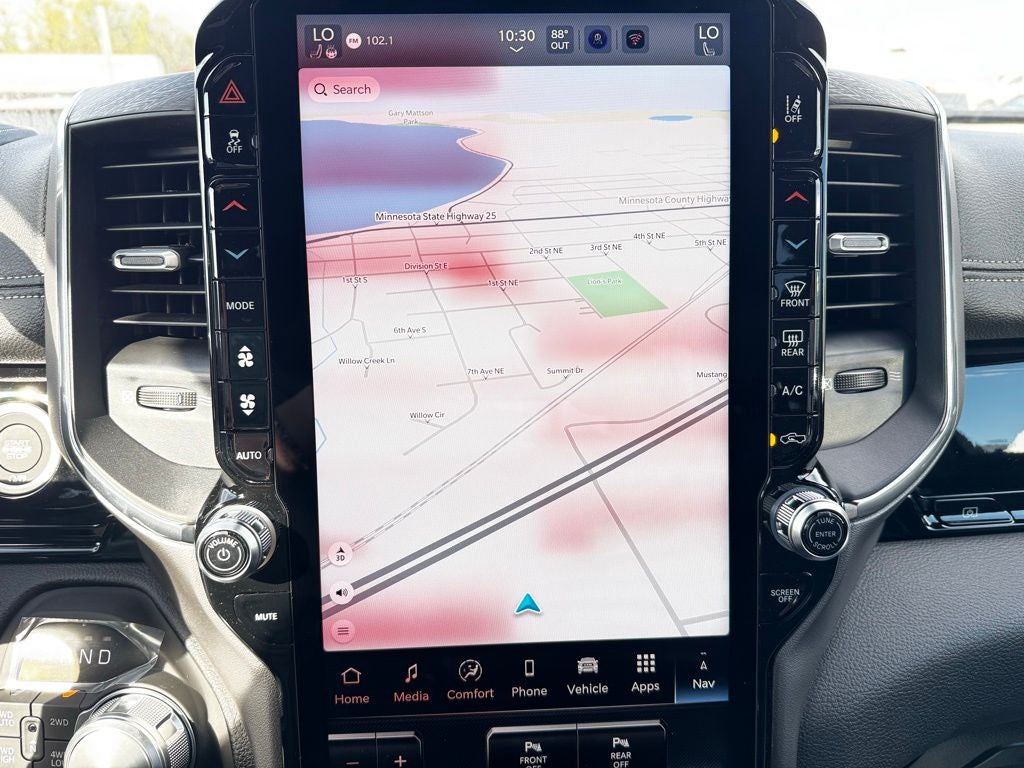 Under the hood, this Ram 1500 is powered by a strong and efficient engine paired with a responsive automatic transmission and four-wheel drive system. The 3.92 rear axle ratio enhances towing and hauling performance, while the anti-spin differential rear axle improves traction on challenging surfaces. The Trailer Brake Controller adds stability when towing, making it a reliable choice for Minnesota drivers who regularly haul boats, campers, or equipment.