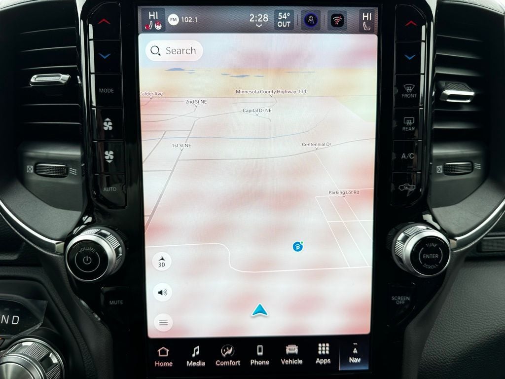 Inside, the 2026 Ram 1500 Laramie offers a first-class experience with leather-trimmed seating, heated and ventilated front seats, a heated steering wheel, and real aluminum accents throughout. The advanced Uconnect 5 NAV system with a 12-inch touchscreen display provides intuitive access to navigation, entertainment, and connectivity features, including wireless Apple CarPlay and Android Auto. The available 7-inch driver information digital display allows customization of key driving data for a more personalized experience. The addition of the Laramie Level 1 Equipment Group brings rain-sensitive windshield wipers and a power tailgate release for added convenience during Minnesotas unpredictable weather.