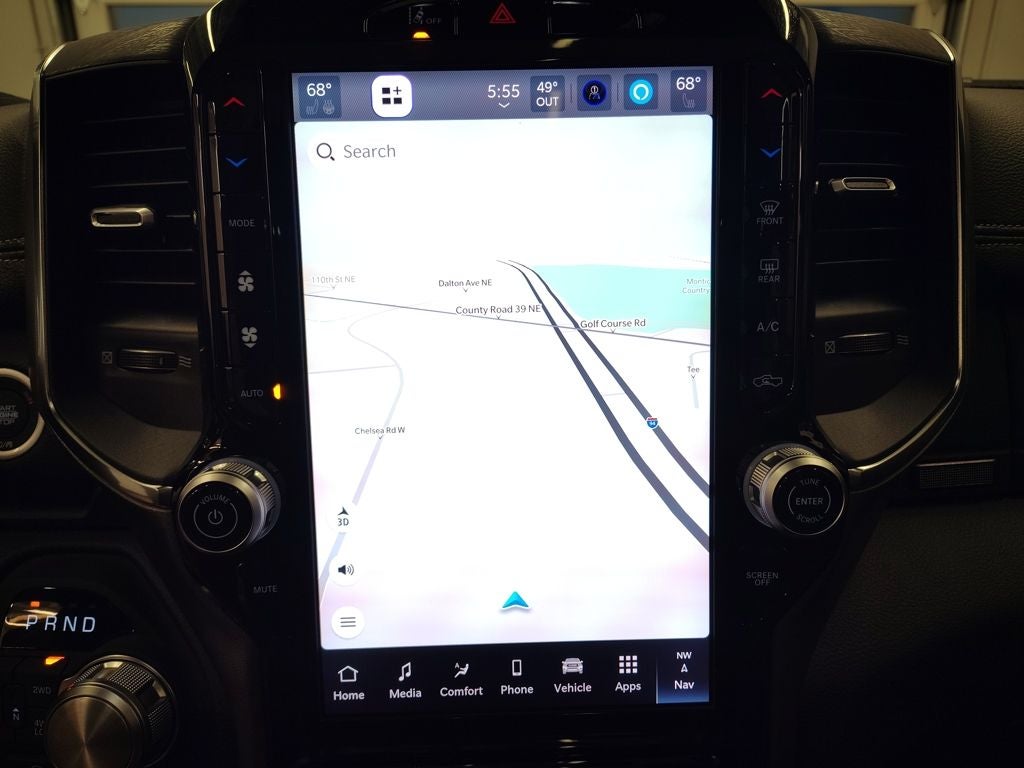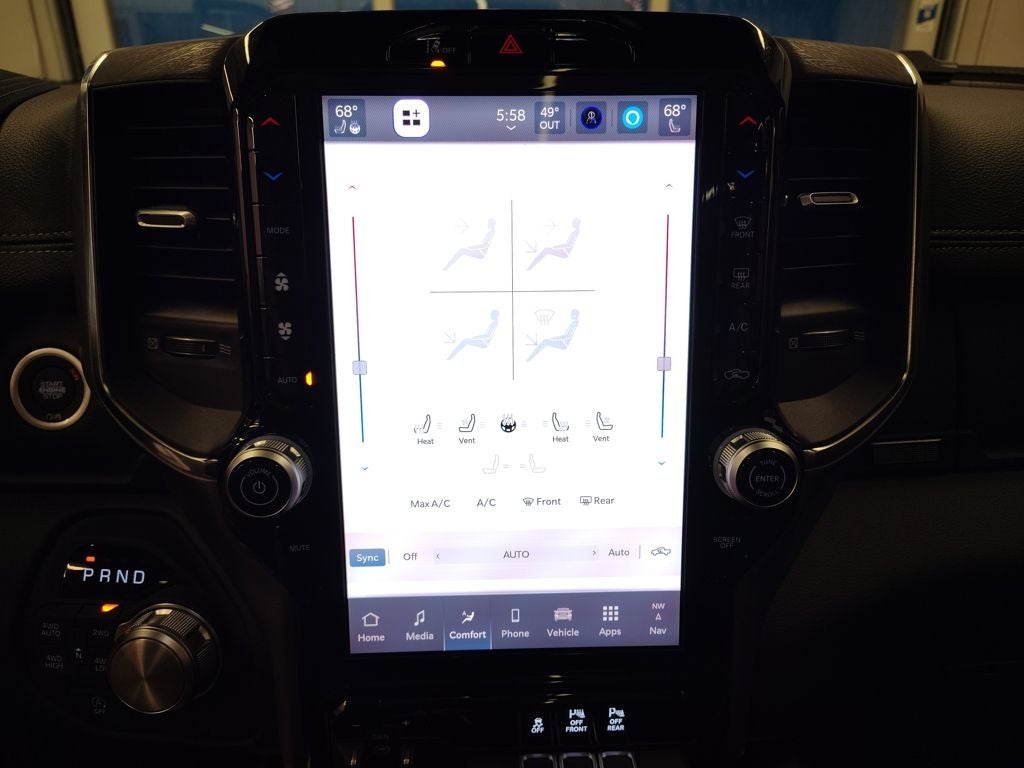 Inside the spacious Crew Cab, the Laramie blends rugged capability with premium comfort. The Laramie Preferred Package adds power deployable running boards, a dual-pane panoramic sunroof, accent-color premium power mirrors, and rain-sensitive windshield wipers. The Laramie Level 1 Equipment Group enhances convenience with a power tailgate release and thoughtful technology features designed for everyday usability. Premium materials, a refined interior layout, and advanced connectivity create a comfortable and modern driving environment for both driver and passengers.