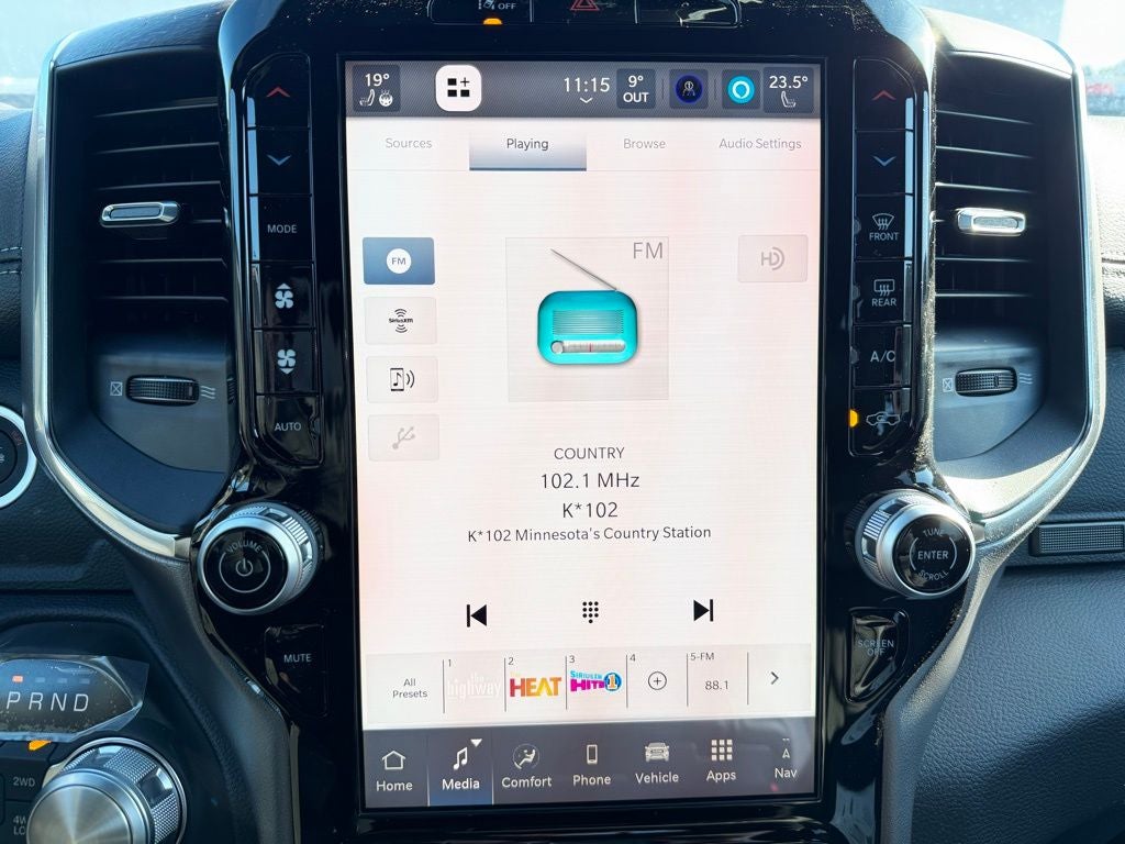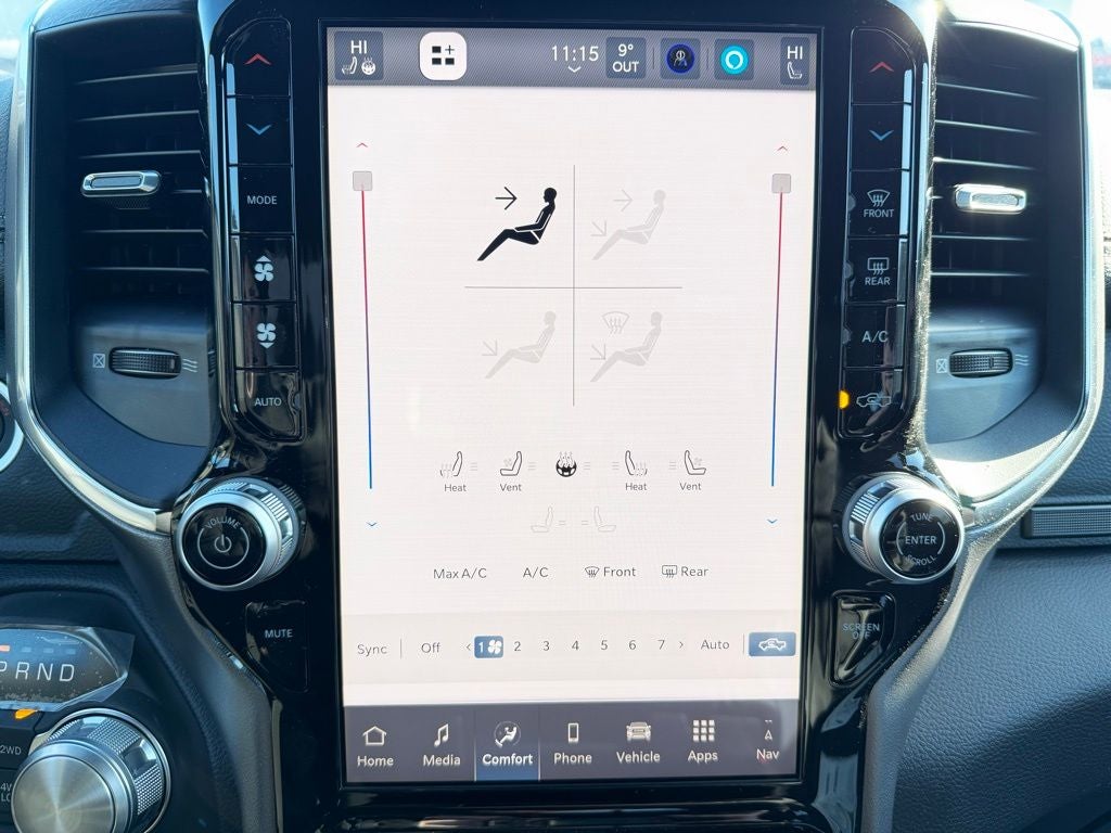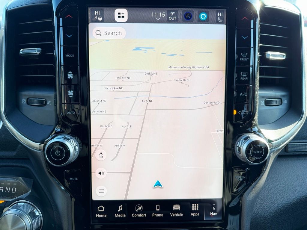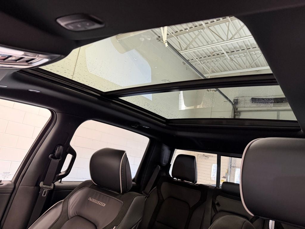Inside, the Laramie trim surrounds you with refined comfort and advanced technology. Premium leather-trimmed seating, heated and ventilated front seats, a heated leather-wrapped steering wheel, and dual-zone automatic climate control create a welcoming environment in every season. The Uconnect infotainment system features a large touchscreen with wireless Apple CarPlay and Android Auto compatibility, Bluetooth® connectivity, and available navigation, keeping you seamlessly connected. A digital driver information display, rain-sensing windshield wipers, and power tailgate release add convenience to daily driving, while the spacious rear seating area offers ample legroom and practical storage for passengers and gear.