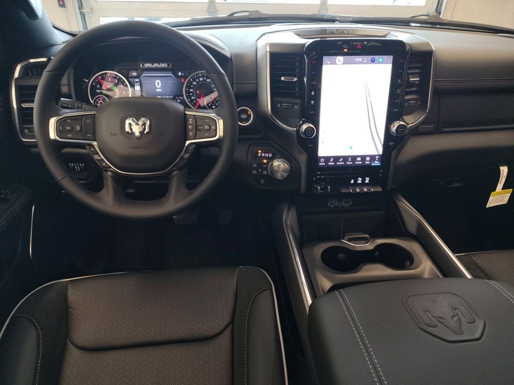 Under the hood, this truck is powered by the legendary 5.7L HEMI V8 with eTorque mild hybrid technology and Stop/Start functionality. The 48-volt belt starter generator enhances low-end torque and overall efficiency, while the G/T performance exhaust adds a confident, performance-inspired tone. Paired with a smooth automatic transmission and a 3.92 rear axle ratio, this Ram 1500 delivers strong acceleration and impressive towing capability. Tow hooks and an integrated trailer brake controller further reinforce its readiness for work or recreation.