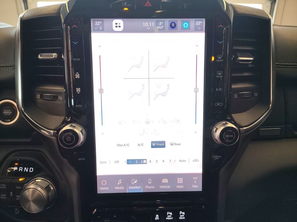 As a Laramie model, this Crew Cab comes well equipped with leather-trimmed seating, advanced Uconnect infotainment with smartphone integration, dual-zone automatic climate control and a suite of modern driver-assist technologies designed to enhance awareness and confidence on every drive. The spacious Crew Cab interior provides generous rear legroom and versatile storage solutions, making it ideal for families and job sites alike.