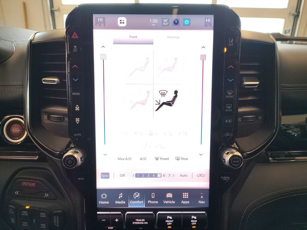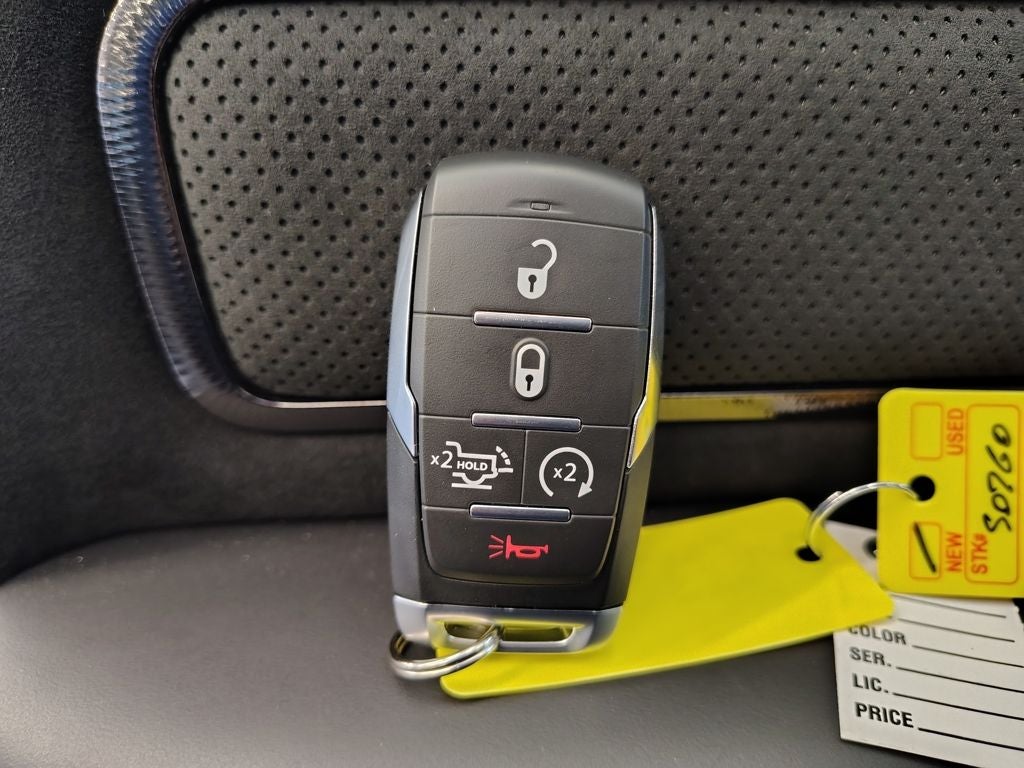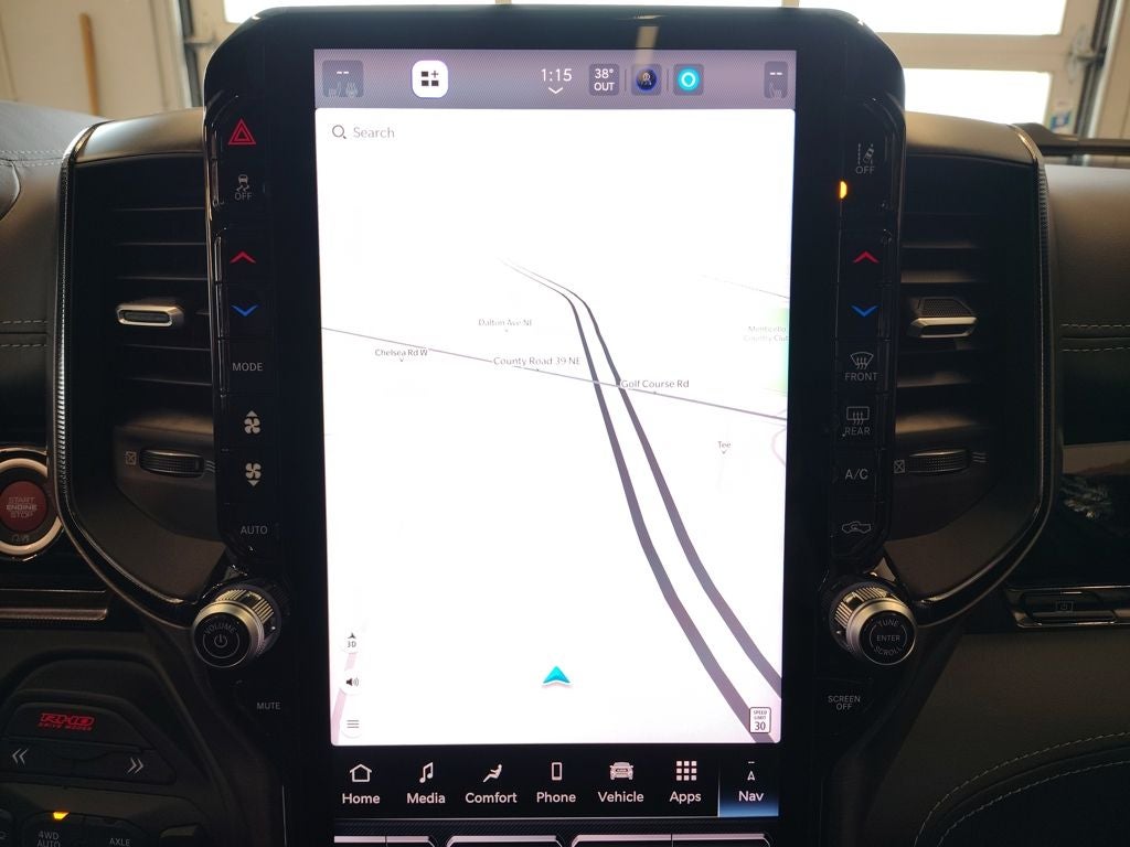 Finished in Diamond Black Crystal Pearl-Coat, the Ram 1500 RHO commands attention with bold styling and monotone paint that enhances its athletic stance. Engineered for serious performance, this Crew Cab 4x4 features a robust powertrain and advanced suspension tuning designed for confident handling on pavement and off-road terrain alike. The Trailer-Tow Group adds enhanced towing technology including Trailer Reverse Steering Control, Trailer Tire Pressure Monitoring, Trailer Light Check, and a 12-way trailer connector, making this truck ready for demanding workloads and recreational towing.