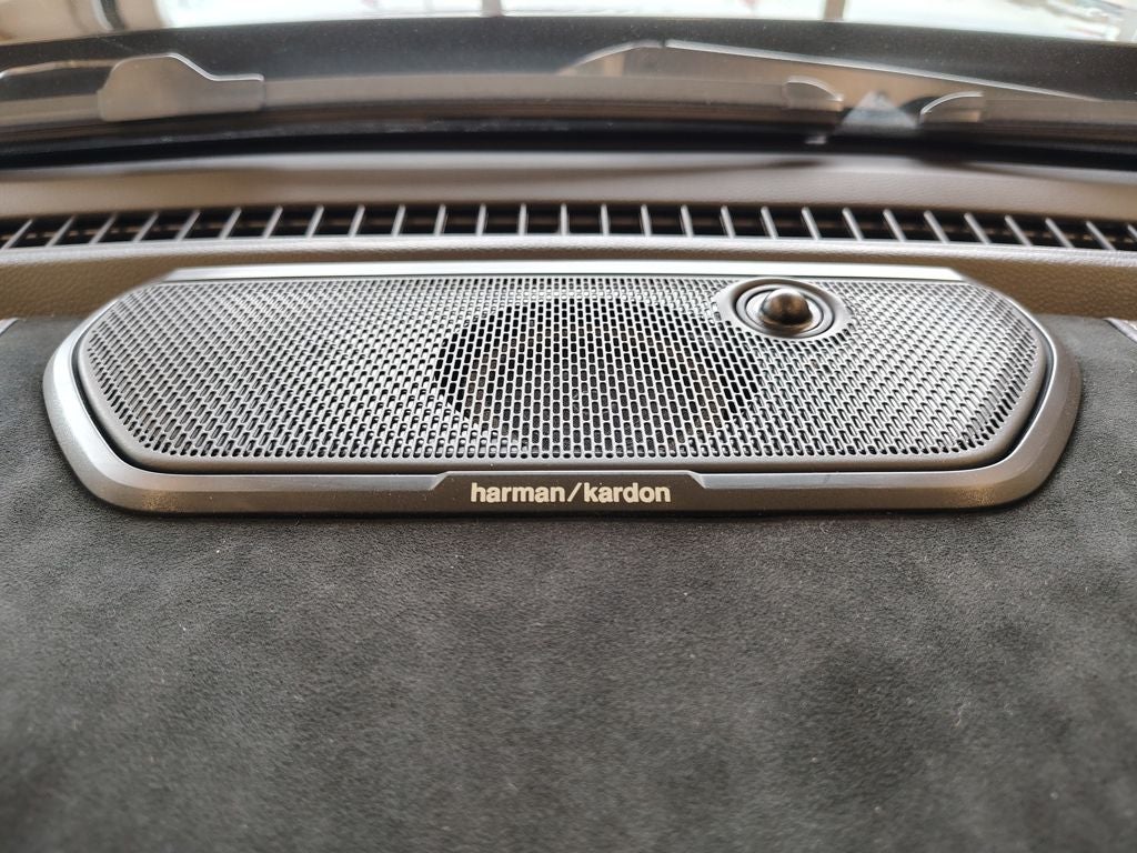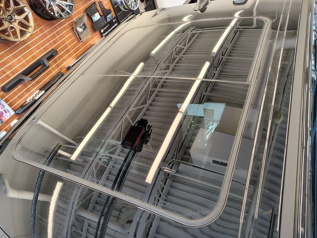 Luxury details including a leather and carbon flat-bottom steering wheel, dual wireless charging pad, wrapped assist handles, luxury front door trim panels, and a dual-pane panoramic sunroof complete the premium experience.
