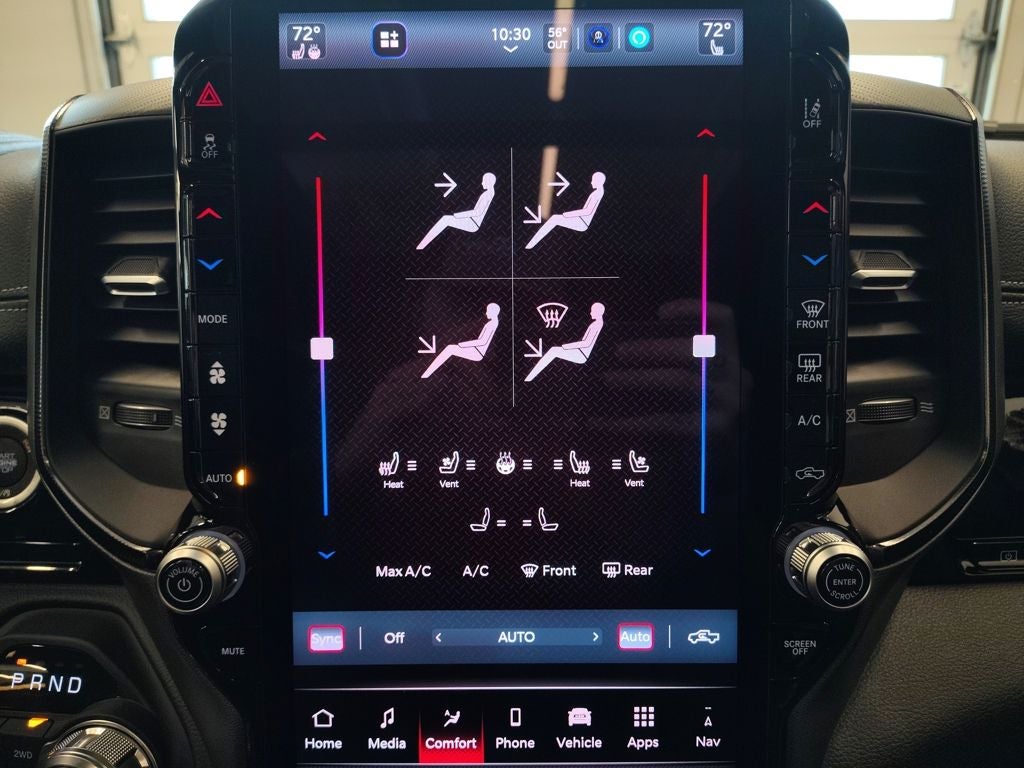 Inside, this Rebel is equipped with luxury leather-trimmed bucket seats and ventilated front seating, creating a premium environment for both driver and passengers. Heated second-row seats add comfort for rear passengers during colder Minnesota months. The Rebel Level 2 Equipment Group brings advanced technology and convenience including the large Uconnect 5 navigation system with a 14.4-inch touchscreen display, a front passenger interactive display and a powerful 19-speaker Harman Kardon premium sound system. Dual wireless charging pads keep devices powered, while driver seat memory and power-adjustable pedals with memory ensure a personalized driving position.