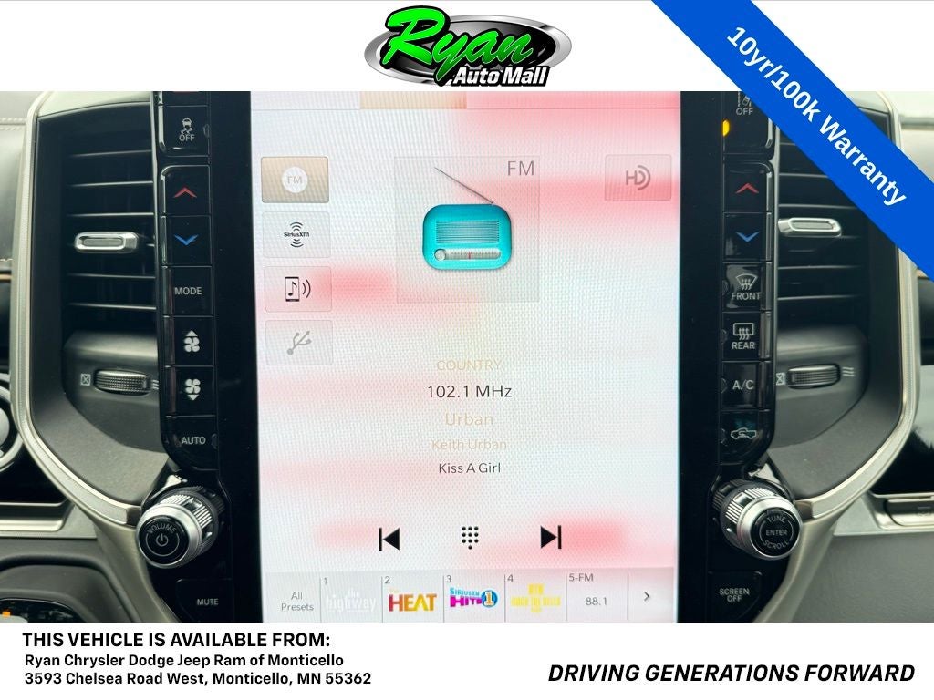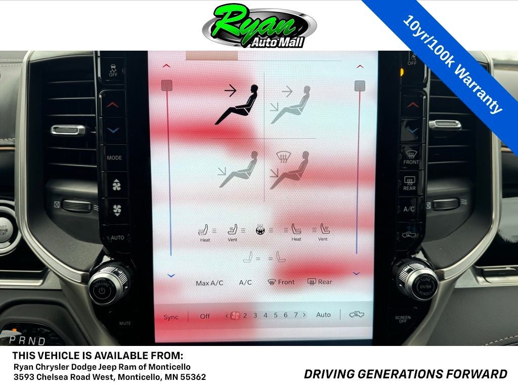 This Ram 1500 is enhanced with the Customer Preferred Package 22V and the Trailer Tow Group, adding advanced towing technology such as a trailer brake controller, trailer tire pressure monitoring system, trailer light check, and trailer reverse steering control to make towing easier and more intuitive. The electronic locking rear axle improves traction when hauling or navigating challenging terrain, while the Bed Utility Group adds practical features including a truck bed cargo divider and adjustable Mopar tie-down hooks to keep gear secure.
