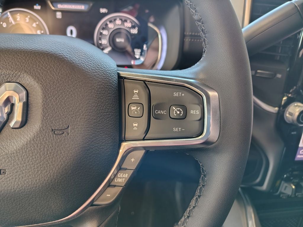 Inside the spacious Crew Cab, the Laramie Level 1 Plus Equipment Group elevates comfort and innovation. Leather-trimmed bucket seats provide premium support, while second-row in-floor storage bins offer practical versatility. Power heat, fold, and telescoping memory mirrors with automatic adjust-in-reverse and auto-dimming capability enhance towing visibility. Dual wireless charging keeps devices powered, and rain-sensitive windshield wipers add everyday convenience.