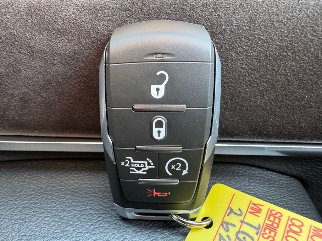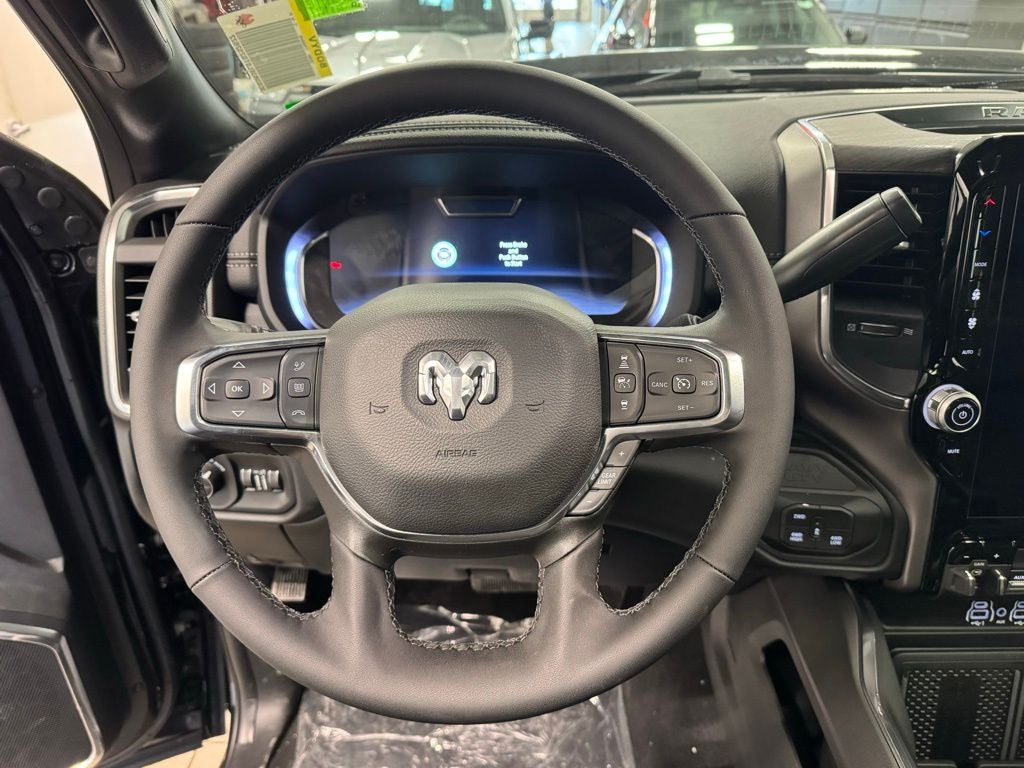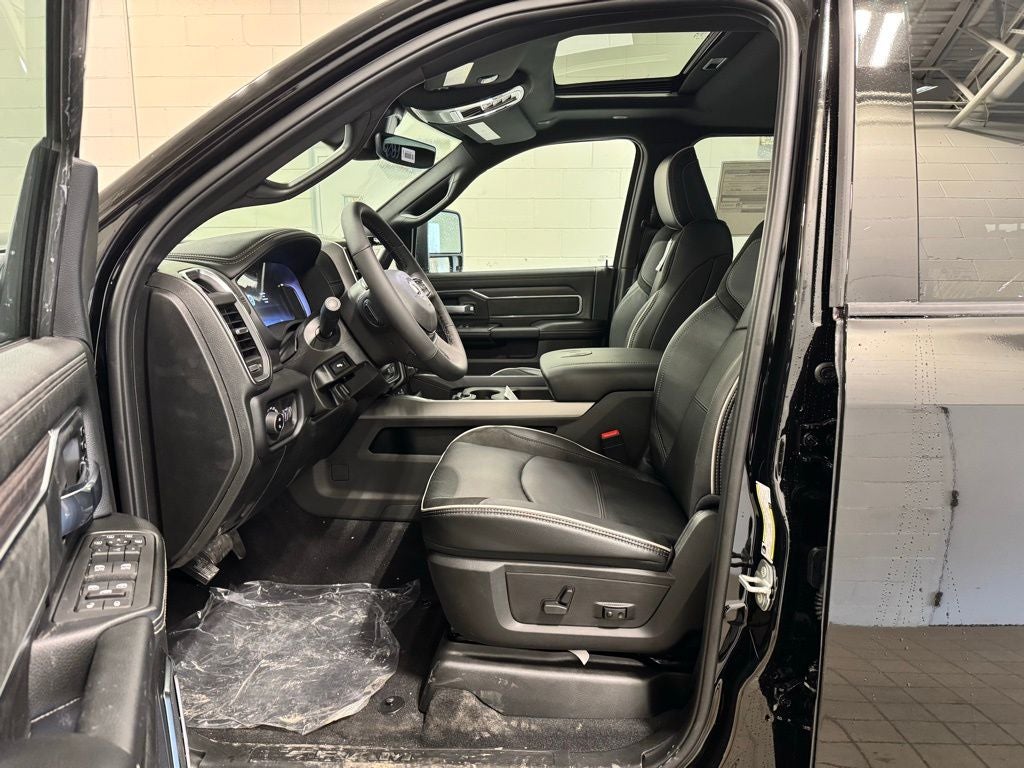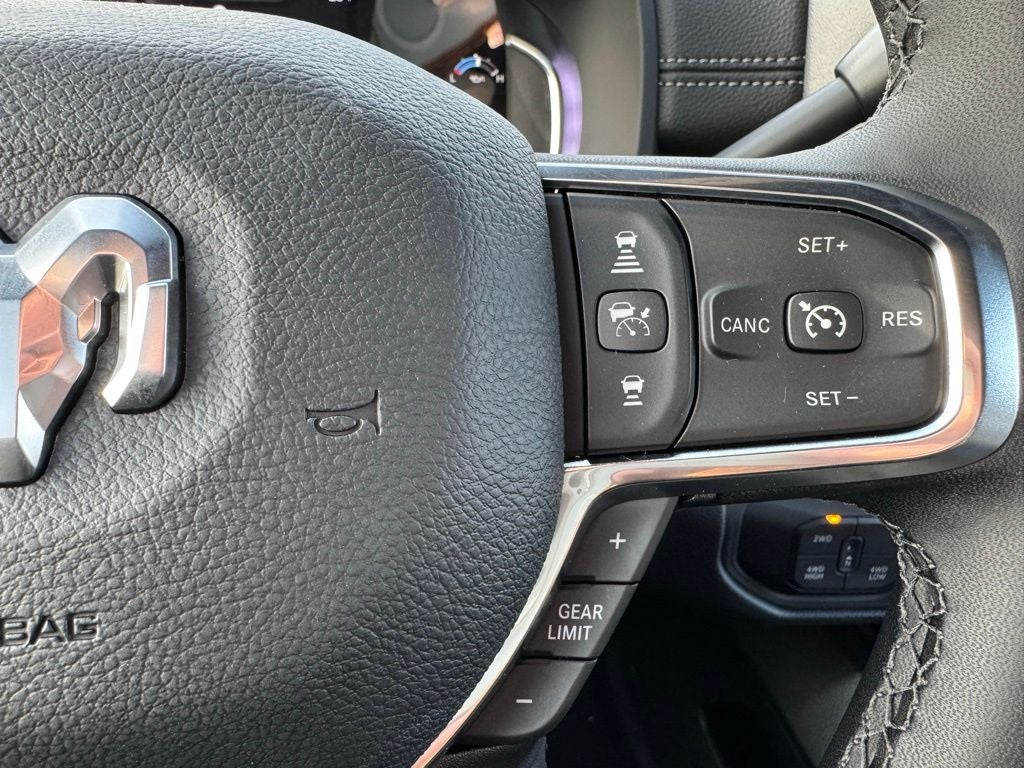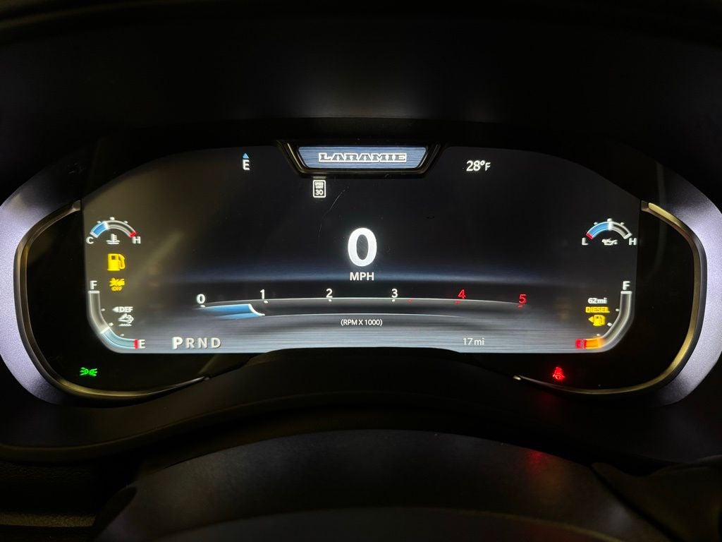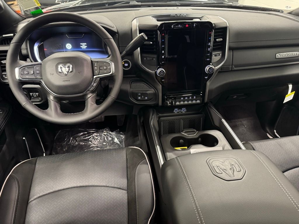 Finished in Diamond Black Crystal Pearl-Coat, this truck features the striking Night Edition package, adding 20-inch black painted aluminum wheels, a body-color grille surround, darkened accents, and a sport performance hood for a commanding presence on Buffalo roads. Inside, leather-trimmed bucket seats elevate comfort, while the Laramie Level 1 Plus Equipment Group adds advanced driver-assistance features including traffic sign recognition, drowsy driver detection, and active lane management. Convenience upgrades such as dual wireless charging pads, power adjustable pedals with memory, power heat/fold/telescoping memory mirrors, automatic-dimming mirrors, LED bed lighting, and a remote tailgate release further enhance everyday usability.