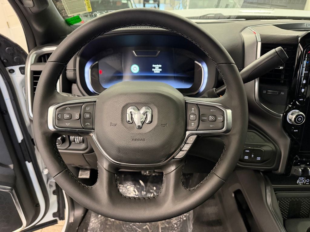 Inside, the Laramie Level 1 Plus Equipment Group surrounds you with premium features, including leather-trimmed bucket seats, dual wireless charging pads, power adjustable pedals with memory, rain-sensitive windshield wipers, second-row in-floor storage bins, and power heat, fold, and telescoping memory mirrors with reverse tilt and auto-dimming functionality. Advanced driver assistance technologies include adaptive steering, active lane management, traffic sign recognition, drowsy driver detection, and a center stop lamp with cargo-view camera for added awareness.