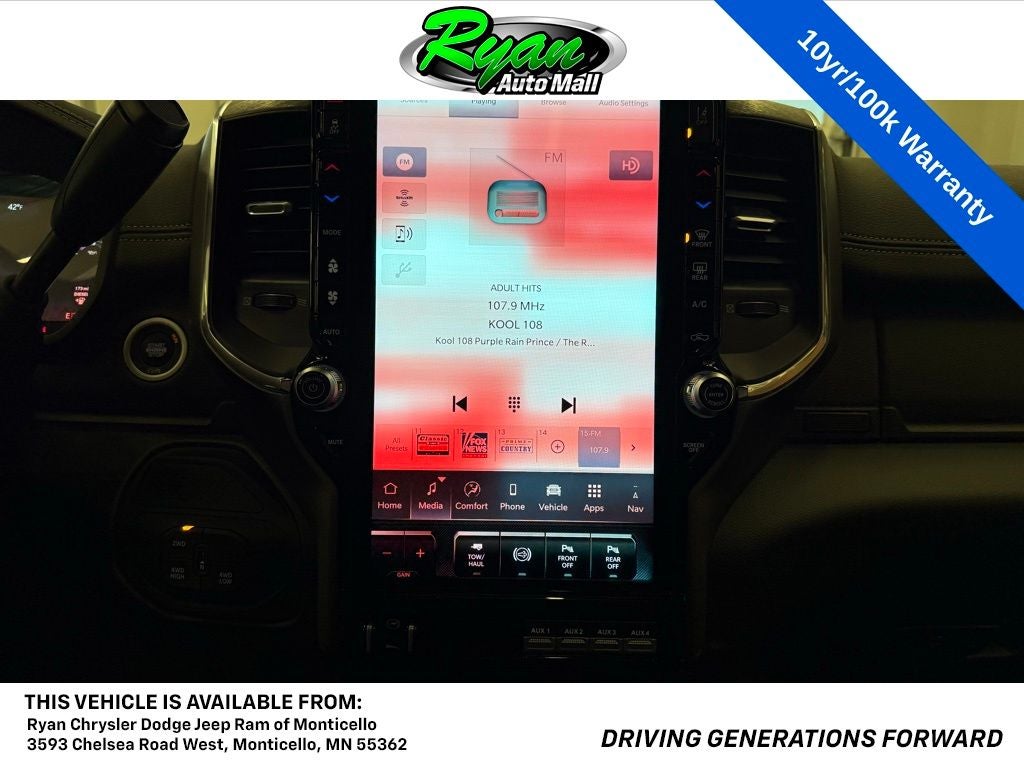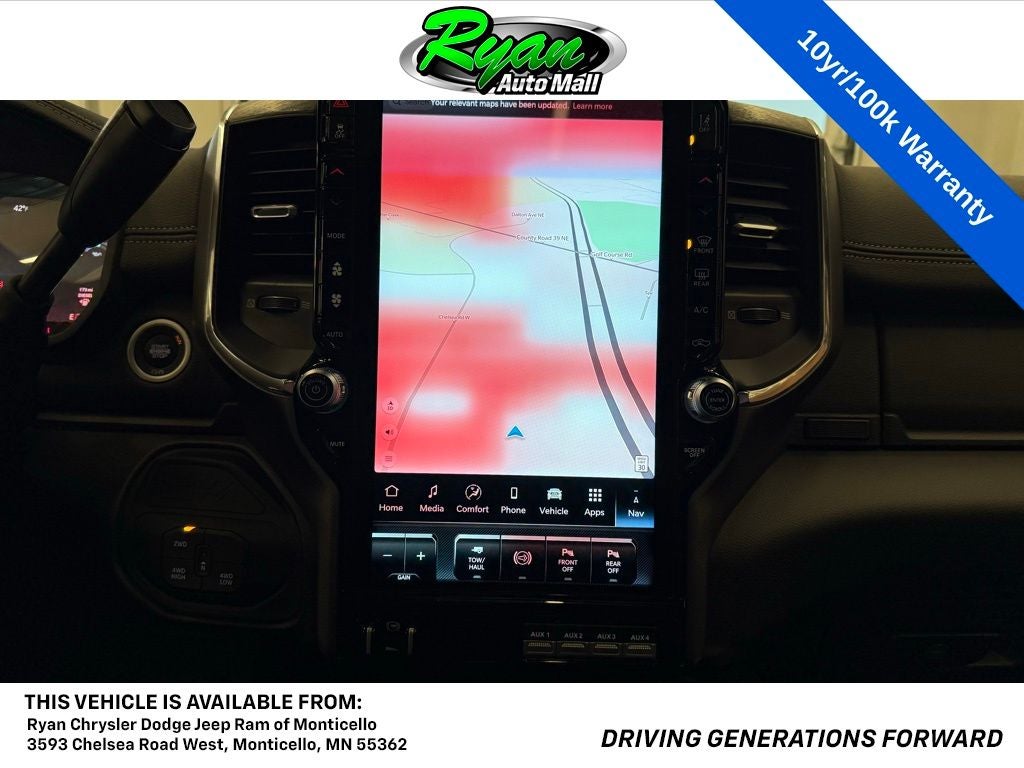 Additional features like the Cold Weather Groupwith an engine block heater and Mopar winter front grille coverprepare this Ram for harsh Minnesota winters. The adaptive steering system provides stability and control under heavy loads, while the power sunroof opens up the cabin with natural light. Interior versatility continues with second-row in-floor storage bins, durable Mopar rubber floor mats, and dual-zone automatic climate control for personalized comfort on every trip.