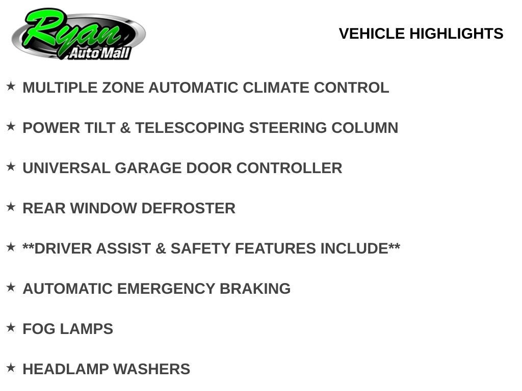 - **DRIVER ASSIST & SAFETY FEATURES INCLUDE**