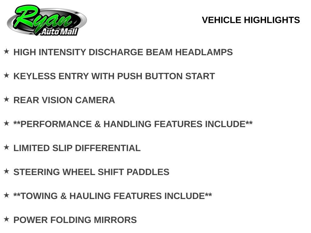 - **PERFORMANCE & HANDLING FEATURES INCLUDE**