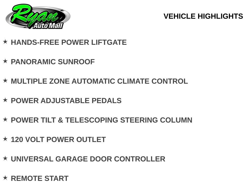 Inside, the spacious cabin offers seating for seven with premium leather upholstery, heated and ventilated front seats, heated second-row seats, and a heated steering wheel for year-round comfort. Power-adjustable front seats with memory, second-row power bucket seats, and power-folding third-row seating create exceptional flexibility. A panoramic sunroof, hands-free power liftgate, and dual-zone automatic climate control add convenience for daily driving and long trips alike.