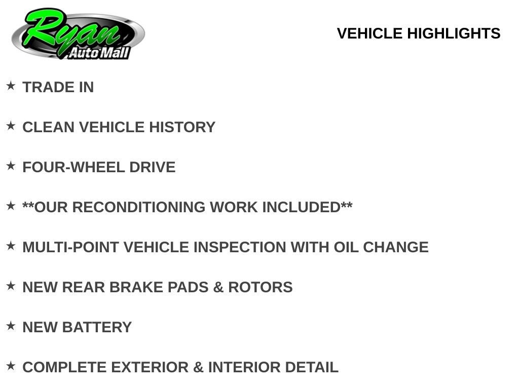 Every effort has been made to offer current and accurate information to our users, but errors can occur. Ryan Auto Mall (Ryan Chrysler Dodge Jeep Ram Buffalo) assumes no liability or responsibility for any errors or omissions in the content contained on this website. Prices are subject to change without notice.