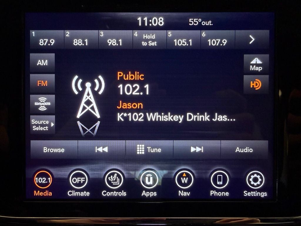 - Radio w/Seek-Scan, Clock, Speed Compensated Volume Control, Aux Audio Input Jack, Steering Wheel Controls, Voice Activation, Radio Data System and Uconnect External Memory Control
