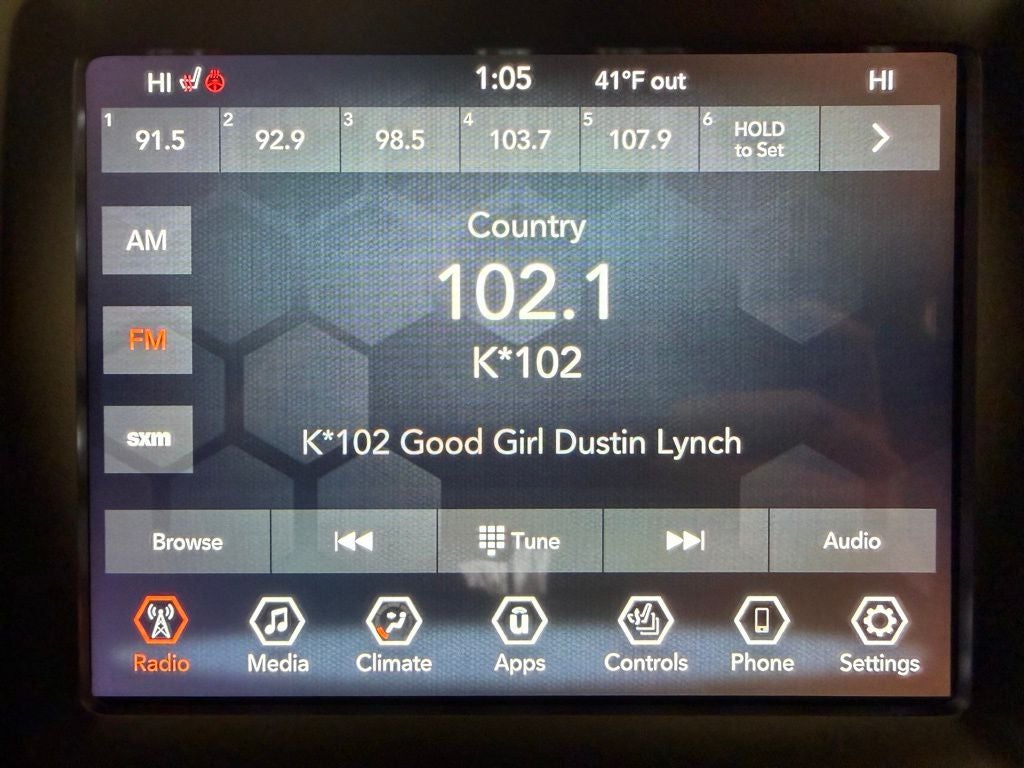 - Radio w/Seek-Scan, Clock, Speed Compensated Volume Control, Aux Audio Input Jack, Steering Wheel Controls, Radio Data System and Uconnect External Memory Control