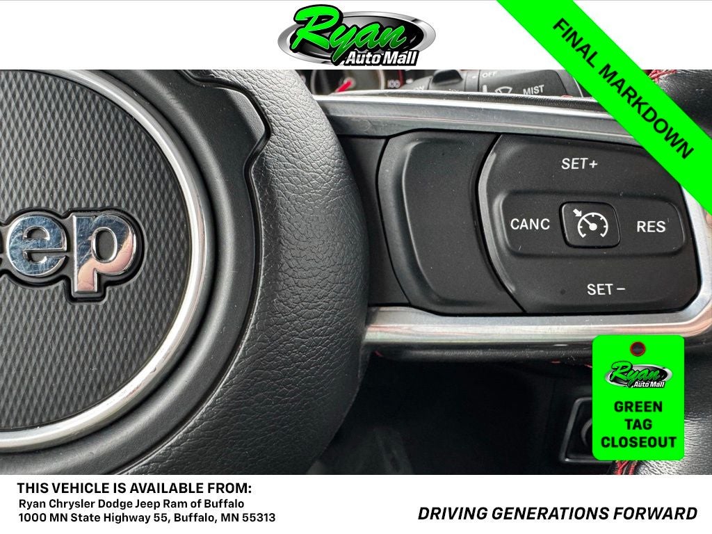 This Wrangler Unlimited Rubicon represents the perfect blend of capability, technology, and adventure-ready design, making it an ideal choice for drivers in Buffalo, MN and the surrounding communities. Contact us for availability and a test drive today. Buy with confidence: Backed by the Ryan Auto Mall group, we boast over 22,000 online reviews and are proud recipients of 9 GM Mark of Excellence awards and 65 MN DealerRater Dealer of the Year awards. Warranty included. Tax, title, license fees, and a $350 documentation fee are not included. Stay safe with PULSE, our optional rear-end collision deterrent system, for just $399. Experience peace of mind with this advanced safety feature which is pre-fitted to all our vehicles. Visit us at 1000 E Highway 55, Buffalo, MN 55313, or call 763-373-9300 to schedule a test drive and discover the Ryan Auto Mall difference!