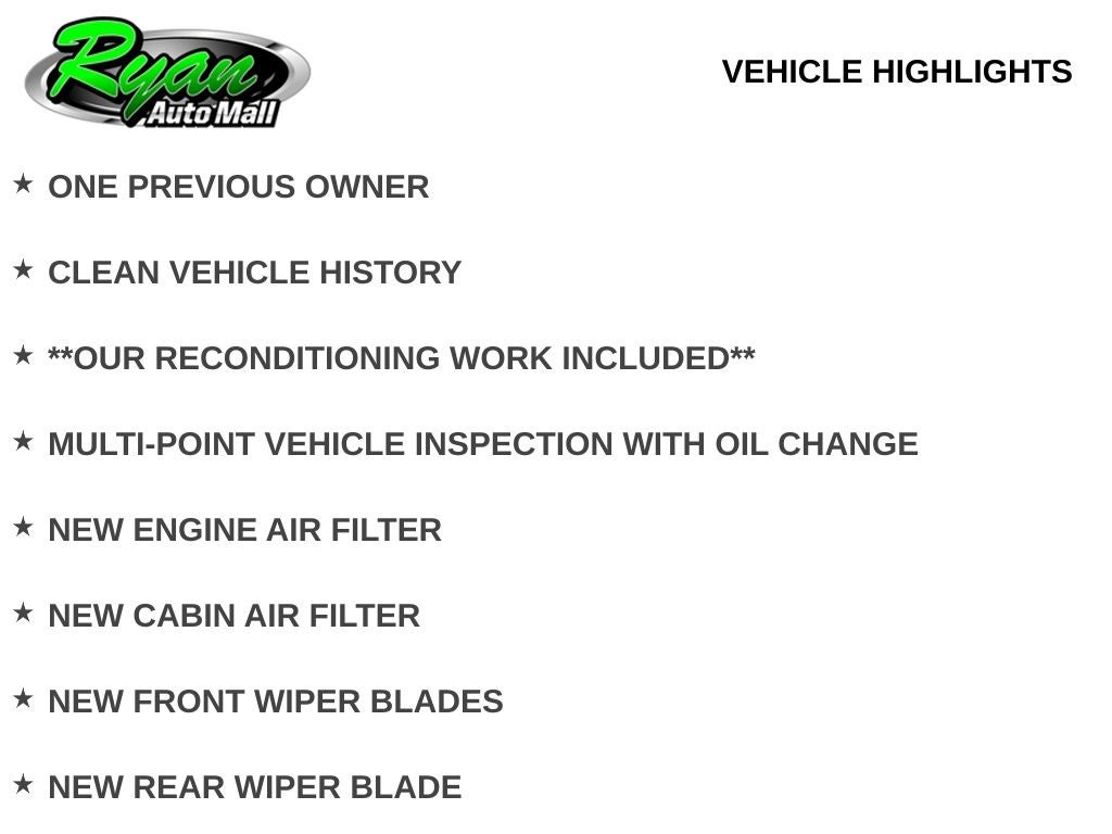 Buy with confidence at Ryan Auto Mall, where trust is earned and results speak for themselves. Backed by more than 23,000 customer reviews and 70 Minnesota DealerRater “Dealer of the Year” awards, we’ve built a reputation you can rely on. This pre-owned vehicle includes warranty coverage for added peace of mind, whether it’s remaining factory warranty or a limited powertrain warranty. Additional vehicle service contracts are also available for extended protection. Pricing includes all dealer fees. Government fees, including state sales tax, title, and licensing, are additional. Visit us at 1000 E Hwy 55 in Buffalo or call (763) 373-9300 to schedule your test drive and discover the Ryan difference.