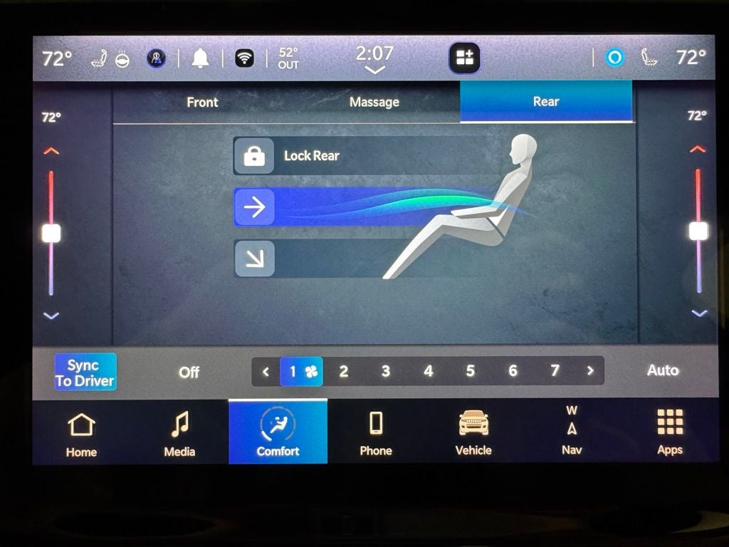This vehicle was taken in as a trade-in and features a clean vehicle history. It has completed our thorough reconditioning process, including a multi-point vehicle inspection with an oil change, a wheel alignment, installation of a new windshield, and a complete exterior and interior detail. Comfort and convenience highlights include a navigation system displayed on a large 10.1-inch touchscreen, a front passenger interactive display, 4G LTE Wi-Fi connectivity, wireless device charging, and Apple CarPlay and Android Auto integration. Premium leather upholstery, heated and ventilated front seats, heated and ventilated second-row seats, a heated steering wheel, memory settings, and power-adjustable driver and passenger seats provide first-class comfort throughout the cabin.