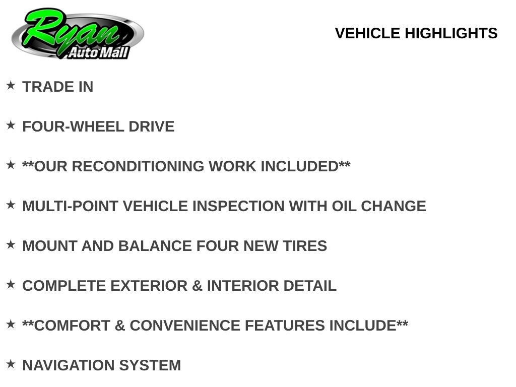 A free CARFAX Vehicle History Report is available on our website, providing added peace of mind as you shop. If you are searching for a well-equipped luxury SUV with Four-Wheel Drive capability in Buffalo, MN, this 2022 Jeep Grand Cherokee Overland is an excellent choice. Contact us for availability and a test drive today. Buy with confidence at Ryan Auto Mall, where our reputation is built on trust and results. Every vehicle we offer, including those sold as-is, undergoes a thorough multi-point inspection and detailed reconditioning process to meet our high standards for quality, reliability, and presentation. Many of these vehicles receive extensive service and preparation before being offered for sale, delivering exceptional value and dependability. Extended vehicle service contracts are available for purchase on any vehicle we offer for added peace of mind. Every vehicle is pre-fitted with PULSE, our rear-end collision deterrent system, available for just $399. With over 22,750 customer reviews, and 65 Minnesota DealerRater Dealer of the Year honors, you can be confident you are choosing a proven leader. Pricing excludes tax, title, license, and a $350 documentation fee. Visit Ryan Auto Mall at 1000 E Hwy 55 in Buffalo or call 763-373-9300 to schedule your test drive and experience the Ryan difference.