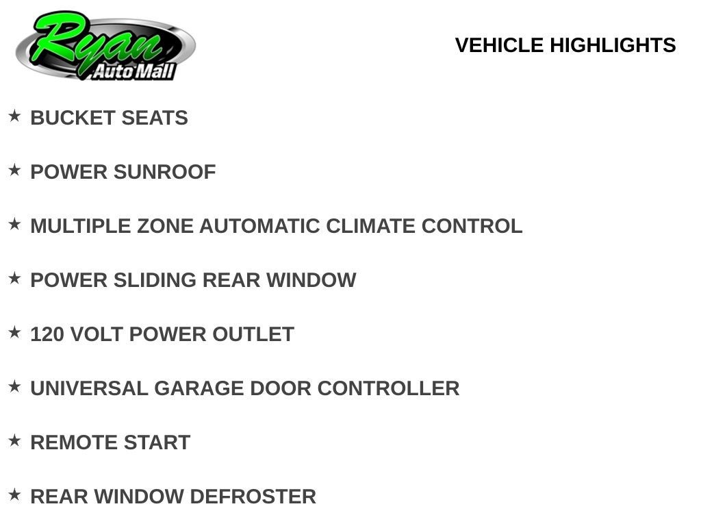 Our reconditioning process included a multi-point inspection with oil change, four new tires mounted and balanced, new engine and cabin air filters, and a complete interior and exterior detail. A free CARFAX Vehicle History Report is available on our website for added peace of mind. Contact us for availability and a test drive today. Buy with confidence at Ryan Auto Mall. With over 22,500 reviews, 9 GM Mark of Excellence awards, and 65 MN DealerRater Dealer of the Year honors, our reputation is proven. This pre-owned vehicle includes warranty coverage for added peace of mind. Pricing excludes tax, title, license, and a $350 doc fee. Every vehicle is pre-fitted with PULSE, our rear-end collision deterrent system, available for just $399. Visit us at 1000 E Highway 55, Buffalo, MN 55313, or call 763-373-9300 to schedule your test drive and experience the Ryan difference.